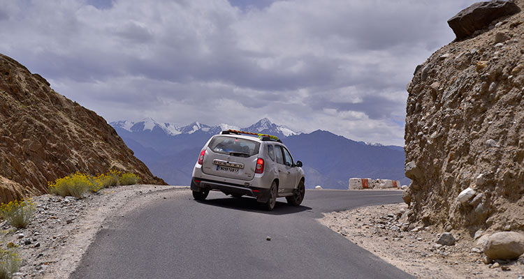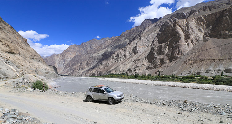 Get out of Agham and you immediately have to trapeze across this broken single laned road that is sandwiched between the gushing Shyok River and a rocky wall face that looks like it will crumble onto us any moment. The river is unnervingly close to us and the swell doesn’t boost confidence either. A few clicks ahead, the road climbs up and is littered with rocks. Thankfully the Duster’s high ground clearance allows it to pass over the small rocks while the big ones need two of us to push and shove. Aniruddha cautions me to move over the small ones as delicately as possible as the area seems quite fragile and any big vibrationscould trigger a landslide. What are we getting ourselves into?