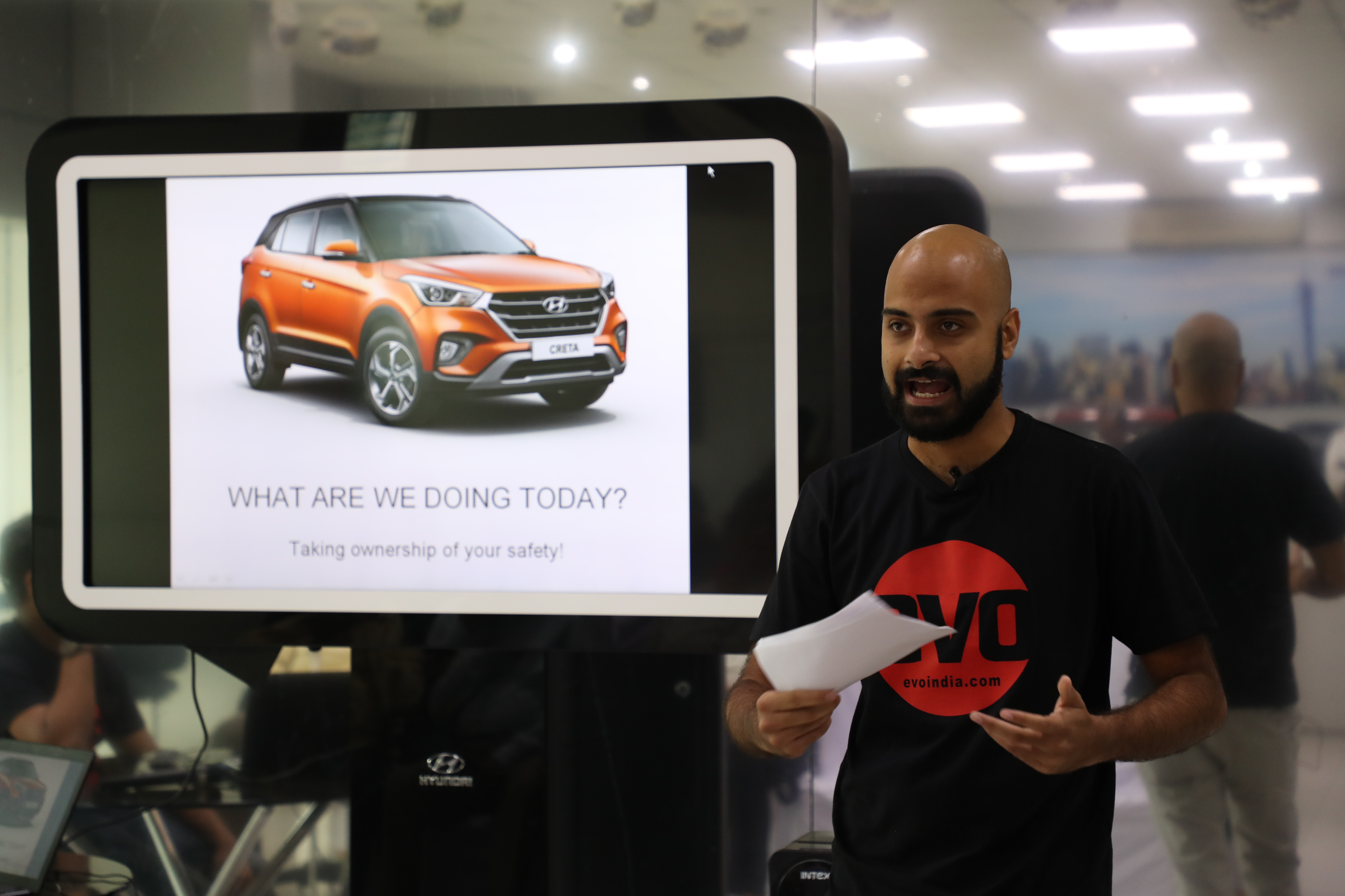 Taking our focus on safety one step further, we partnered with Hyundai India and their #BeTheBetterGuy road safety campaign to conduct a safe driving workshop for Hyundai Creta owners in Pune and stimulate conversations around safety in general and safe driving in particular. Beginning with a short note on the importance of safety by the editor and especially on what we do and why road safety is important, we then moved onto the nitty-gritties of what makes us safe on the road in even the most trying circumstances. Aatish, our principal correspondent, ran Creta owners through a detailed presentation on the tips and tricks that we have learned over the years, things that have helped us become safer drivers. We also had Kamal K Kashyap, the former Director General of Police, Maharashtra, addressing the ten Hyundai Creta owners, speaking at length about being the better guy on the road and not letting stray instances of aggressive driving by road users affect us. The Creta owners were then flagged off from the Sanjay Hyundai dealership in Wakdewadi. Yes, we had a good old fashioned evo India roadtrip planned with the excited bunch of Creta owners.