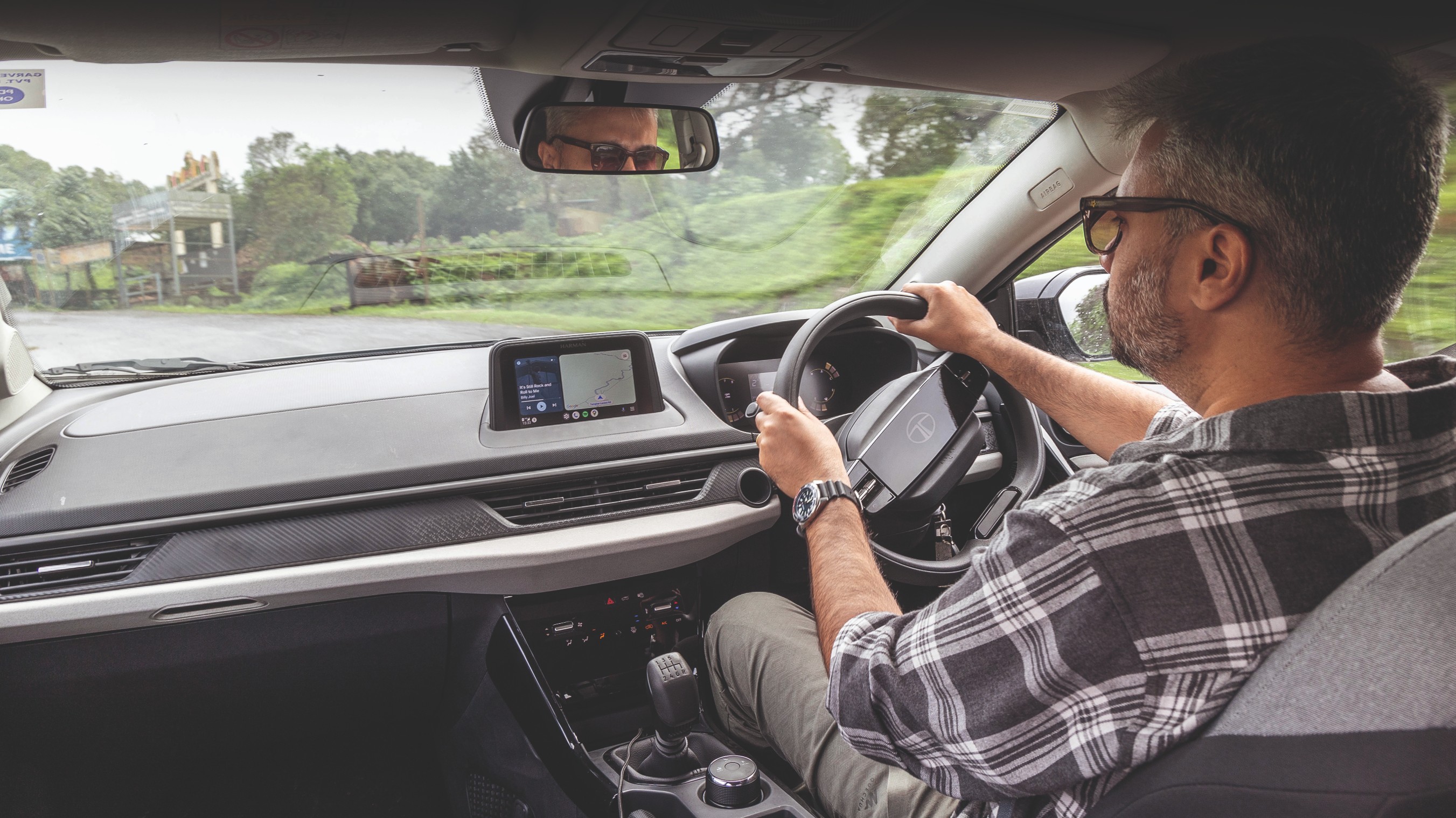 The sunroof is a welcome addition to the Nexon Pure SIdentifying a budget is important, but equally important is knowing what you need and what you want. I’d begin by making a list of things that are must-haves and things that would be nice to have but not essential. Top of the ‘must-have’ list would be a full gamut of safety features — non-negotiable. Connectivity is also crucial, so a touchscreen infotainment system with Android Auto and Apple CarPlay would be next on my list. As an enthusiast, I wouldn’t want to compromise on performance, which is why a turbo-petrol and a six-speed manual are next. On the ‘nice-tohave’ list, I’d include features like automatic headlamps, rainsensing wipers, and perhaps even a sunroof. Using this list, I would look for the variant that had all of the things on my musthave list and at least half of the things on the nice-to-have list. On the Nexon, this leads me to the Pure S variant. The Pure S costs between `10.3 and `12.3 lakh, depending on the engine and gearbox you choose. If you do a lot of kilometres — I’m talking upwards of 40,000 kilometres a year — then the 1.5-litre diesel is a good bet. It has 113bhp and 260Nm making it an excellent mile-muncher while still being frugal. If you are primarily a city dweller, then an AMT with the Monostable shifter with paddleshifters can be optioned for around ₹70,000. The 1.2-litre petrol you see on these pages has 118bhp and 170Nm mated to a six-speed manual transmission. On the winding roads around Pune, this engine feels very grunty — happy to climb up most inclines and drive out of corners in third gear. The Nexon also has a drive mode selector to switch between eco, city and sport drive modes. Tata also seems to have paid particular attention to driveability in the city, as is evident by the light clutch and shifter action. This is all standard Nexon fare, and we know it’s a good recipe; after all, it won our compact SUV comparison very recently.