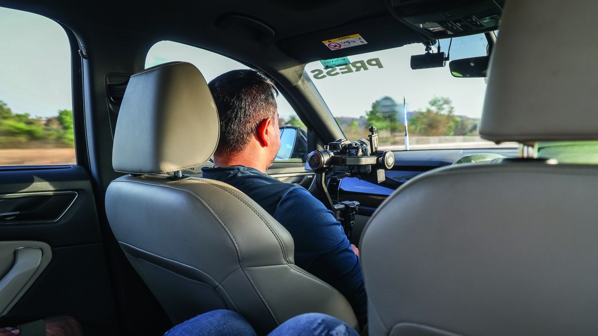 Kodiaq's front seats felt quite cosy during the long runs.Okay sure, not everyone was happy. There were times when one person had to move to the third row, so the guys in the second row had some space to move around and shoot. And let’s be real, the third row isn’t the most comfortable. Space is at a premium and the seating position is too knees-up which makes it strenuous over long distances. But hey, at least we had that third row — so many fancier SUVs were not even considered for this drive because they didn’t have that extra bench.