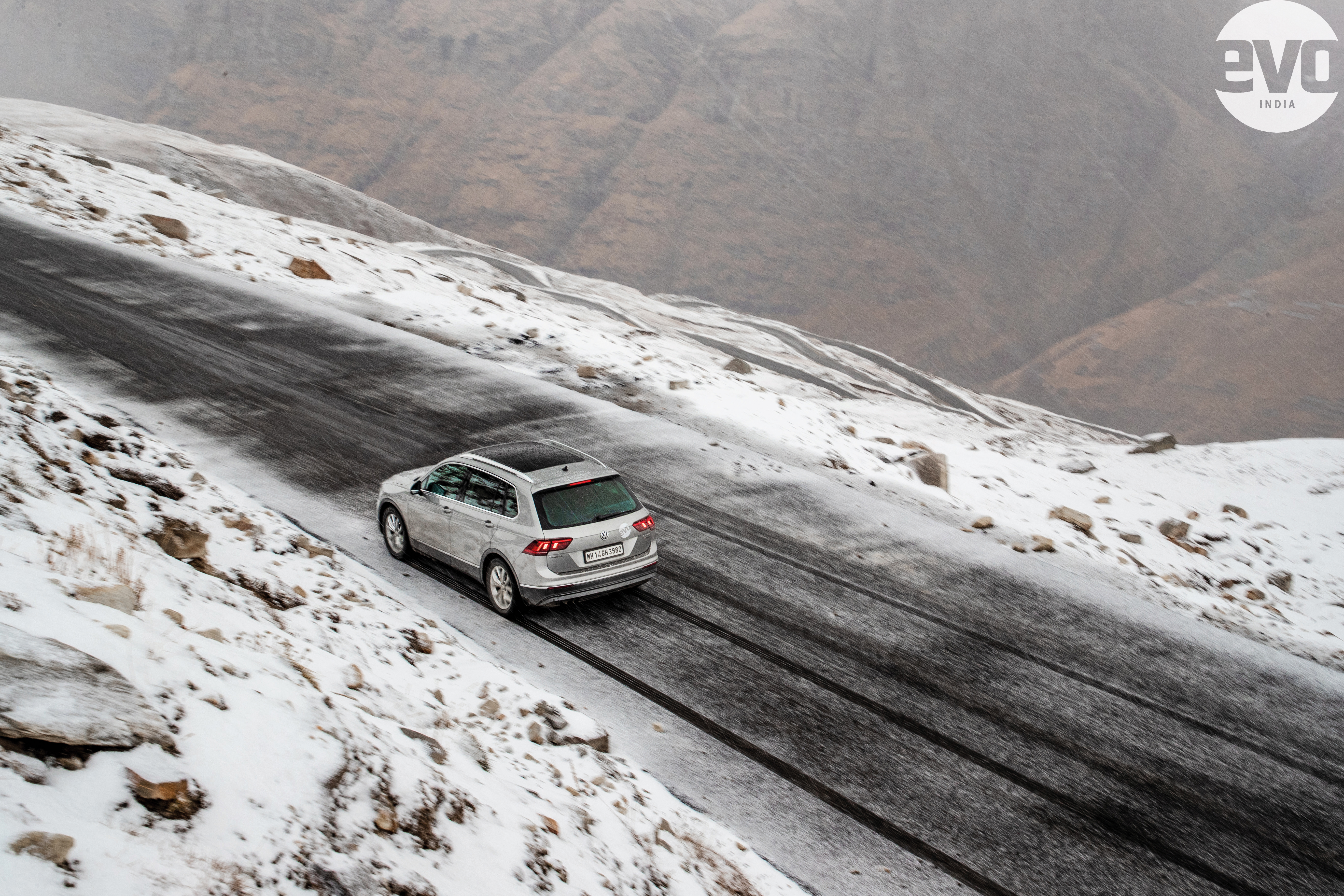 Crossing Rohtang La was easier than I anticipated though. You’ve got to slow down and be careful, but if you’re in a capable SUV, it will do the rest. The black ice could catch out the uninitiated but we had a collective 80 years of driving experience in the Tiguan; 25 of those were Rana’s and involved driving these roads at full pelt. ABS, traction control and all-wheel drive were spreading the safety net even wider. We were fine. But we were cold. I was bundled up in multiple layers and looked like a stuffed animal with my cap, gloves and military-grade trekking boots. I spent a lot of time taking photos and updating our social media channels (@evoIndia — go follow!) while cursing myself for not spending the extra `300 on touchscreen-friendly gloves. The rest of the team weren’t doing much better, a symphony of chattering teeth speckled with expletives broke out every time someone rolled down a window. Meanwhile, Rana was behaving like it was the start of the Delhi winter and there was a slight nip in the air — a light jacket and a smirk at our plight was what he had on.
