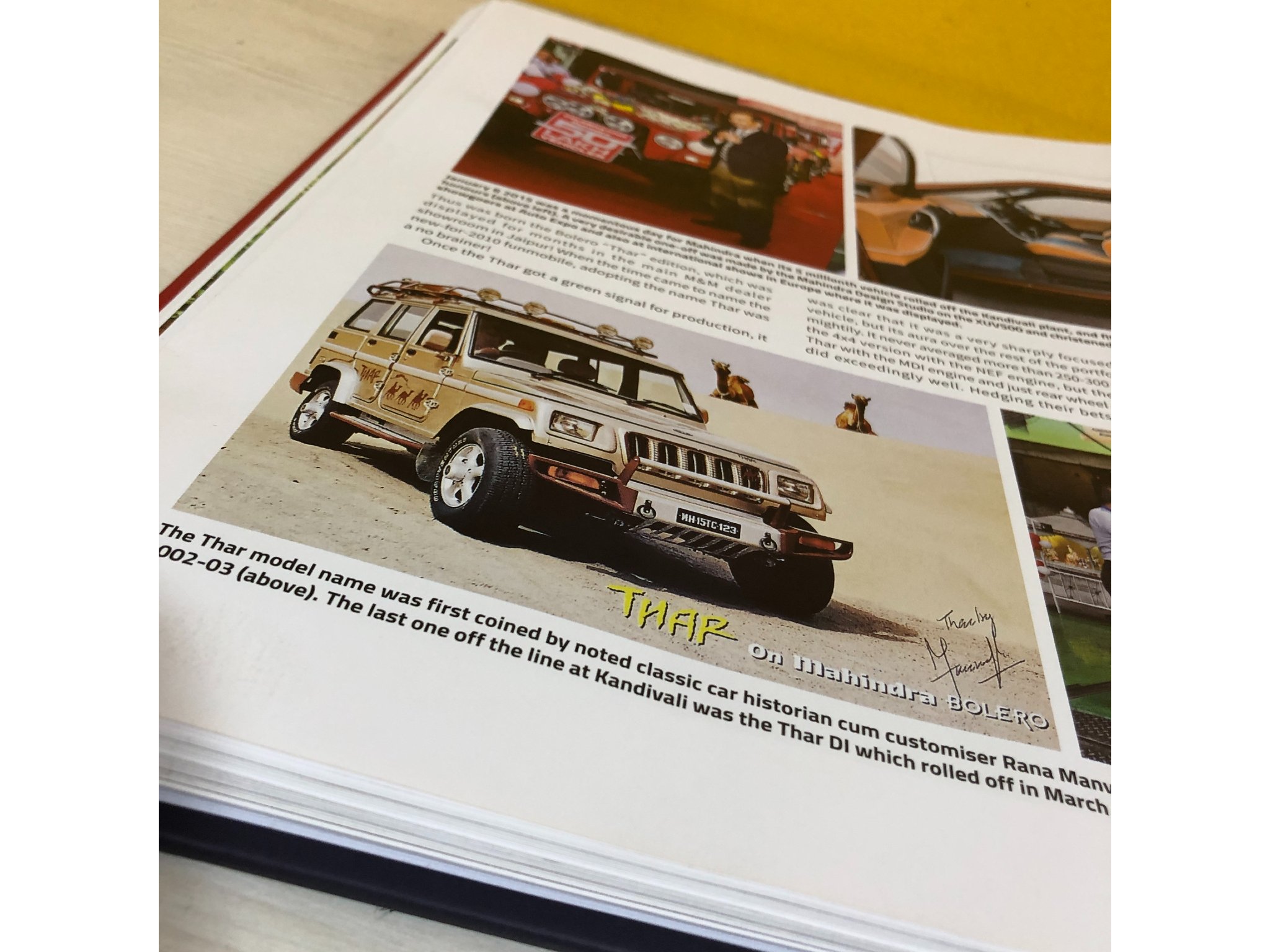 This coffee table book will make a great addition to any enthusiast's collectionA final note. The VIN plate on the passenger side of the dashboard of the all-new Thar came about when Adil reminded Mahindra’s design chief Kripa Ananthan of the data plates on the dashboard of all Mahindra vehicles from the CJ-2A right till the MM550.
