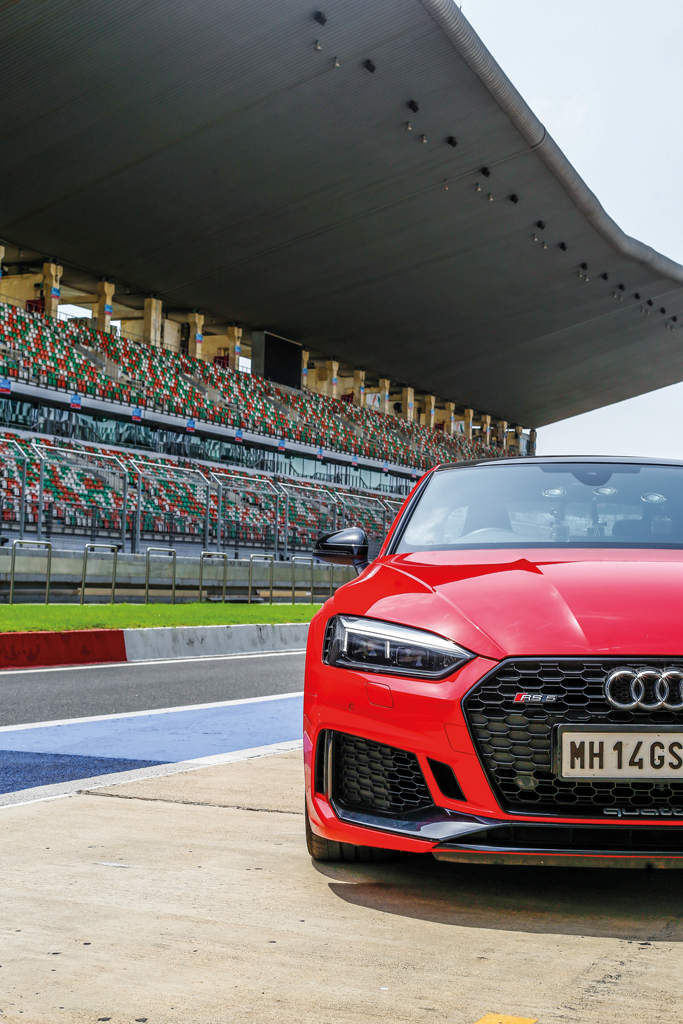 Audi fleetThe instructors did take note of who was more comfortable behind the wheel during the laps we did, pushing us harder when we went out for our next stint. All the laps were done behind an instructor’s car and everyone was kept decently under the car’s limits. They were fun, either way. It didn’t hurt that our instructor was an old friend from our rallying days together, who let me have some more fun on my hot laps in the RS 5. We loved the previous generation RS 5 for its ability to provide everyday comfort, while having a monster of a naturally aspirated V8. It sounded glorious and made some serious power, while being a great handler, making it a very complete performance car. Since this new version has dumped the V8 for a turbo V6, has it given up its rawness and become mellow? Not a bit. And I'm happy to have sampled this newest RS model at the very end, leaving the best for last. You’d think that after the R8, the smaller engined and more road focused RS 5 would be less fun on the track, but that wasn’t the case at all. The latest generation RS 5 is powered by Audi's new 440bhp 2.9-litre turbocharged V6 petrol engine that develops a massive 600Nm of torque helping it propel at a pace that’s properly fast, yet very controlled. The result makes the RS5 a lot easier to drive fast and get closer to the limit, without soiling your pants. This should translate to great drivability on the road too.
