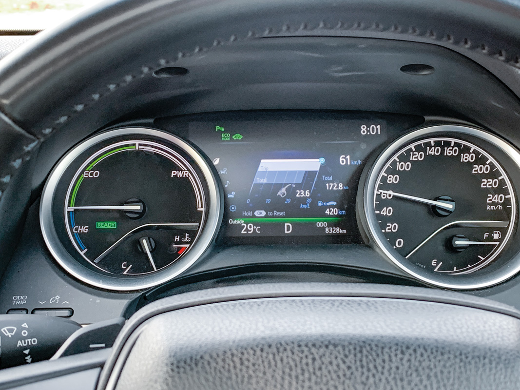 Excellent fuel economyAppropriately we set off from the Lemon Tree in Bengaluru’s Electronic City in zero emissions mode. Pure EV mode. The Energy Monitor on the 8-inch touchscreen graphically illustrates the energy flow and more often than not you only know that the engine has kicked in via this monitor; so silent, imperceptible and refined is the switch over. In fact, it is the city where the Camry Hybrid’s self-charging hybrid tech works best and studies have shown that for 60 per cent of the time it runs on pure EV, zero emissions mode. The nickel metal hydride battery feeds the 88kW (118bhp) e-motor that shares space with the internal combustion engine. The petrol engine is a 2.5-litre naturally aspirated unit that runs on Atkinson cycle where the shortened intake stroke combined with a full-length expansion stroke squeezes more energy out of every drop of fuel.