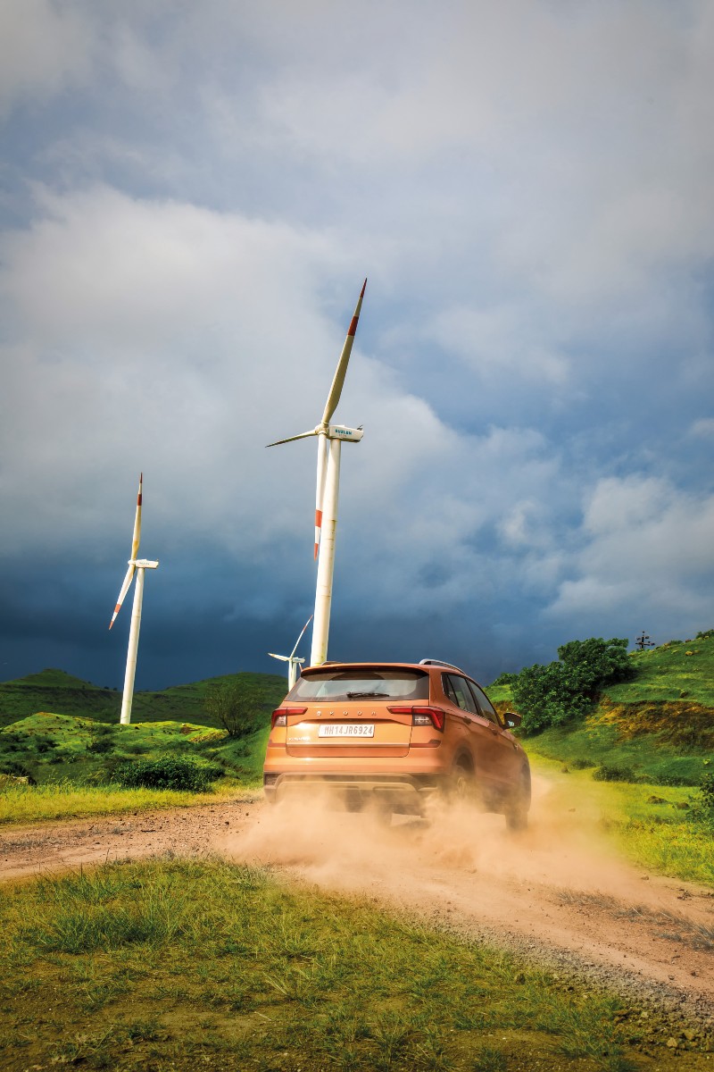 The steering wheel of the Kushaq is adjustable for both rake and reach Sorted drivetrain and chassis aside, the Kushaq does so much more to suck you into the driving experience. A steering wheel that is adjustable for both rake and reach — so important to getting a good driving position. Supportive seats — there’s adequate bolstering so you aren’t thrown around when you get aggressive behind the ’wheel. A traction control-off button that never disappears off the infotainment screen — perfect for the dirt trails around the windmill farms we are visiting. Not to mention it comes packing luxuries such as ventilated seats and a sunroof.