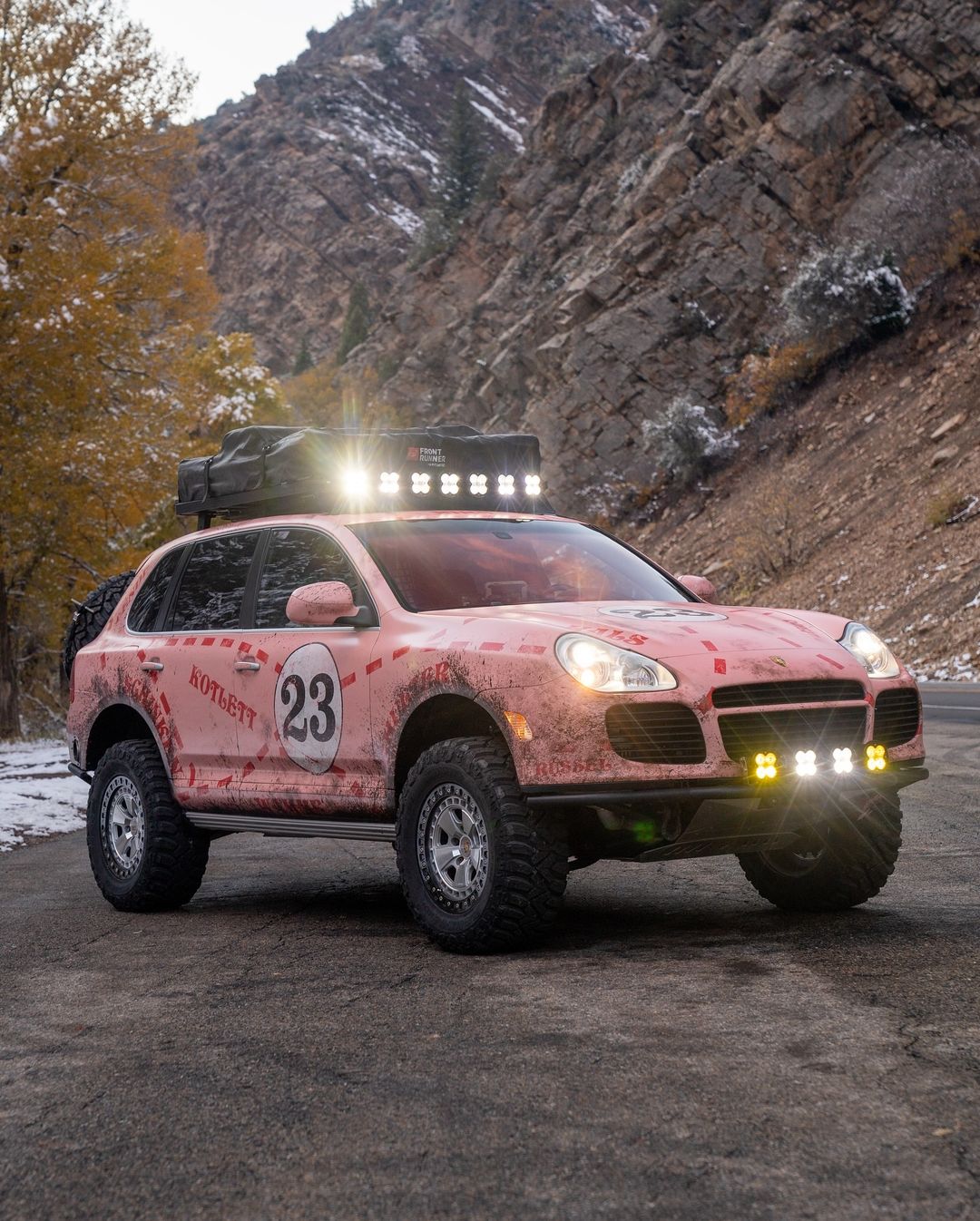 This Porsche Cayenne rig is owned by Harrison Schoen, and while the SUV has sported a variety of avatars in the past, it now gets the Pink Pig livery from Porsche’s Le Mans race cars. The Cayenne also gets a lift kit, additional lighting, Kumho Road Venture MT71 tyres and new wheels, with a spare wheel hanging on the back. Closer inspection of this build will also reveal off-road bumpers, a bash plate and additional off-road protection for when the SUV is venturing off the tarmac.