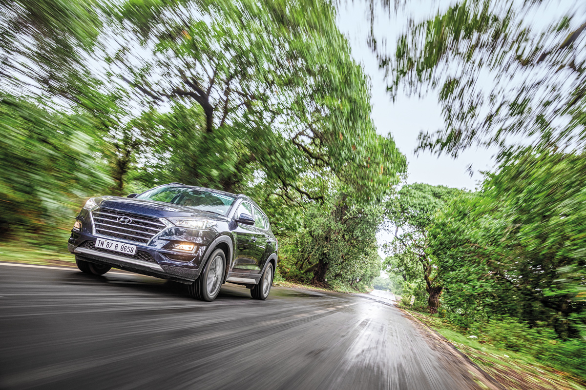 Panchgani fades away as I drive into a dense canopy. And I realise my prediction was wrong. The rain doesn’t intensify. In fact, it stops completely, though the heavy clouds still loom overhead. The tree cover combined with the overcast skies force the automatic headlamps on. Here, between Panchgani and Mahabaleshwar, the road is wider and the turns aren’t as sharp. I speed up, allowing the Tucson to flow with the road but constantly on the look out for patches of standing water. There are no threatening drops on the sides of the road here, though the thick tree trunks won’t be much kinder should you find yourself heading their way. That said, the road is smooth and the corners are well-cambered, making it easy to settle into a rhythm. Of course, I am still taking it easy. It might have stopped raining but the roads are still wet in patches. I’m aware of the lack of grip — making my braking distances longer and understeer setting in earlier. But speed isn’t the only way to have fun in a car. Flow matters. And with these roads that are normally crowded with tourists all to ourselves, we are flowing well.