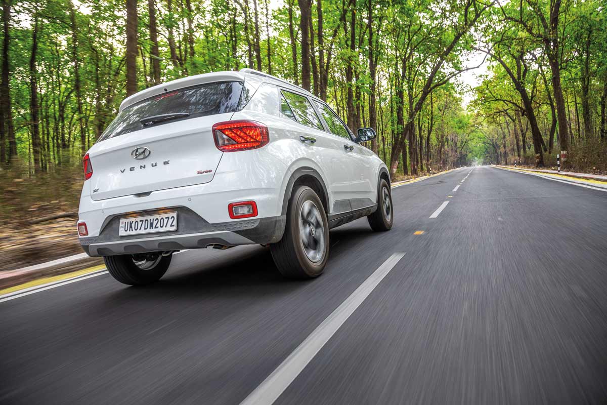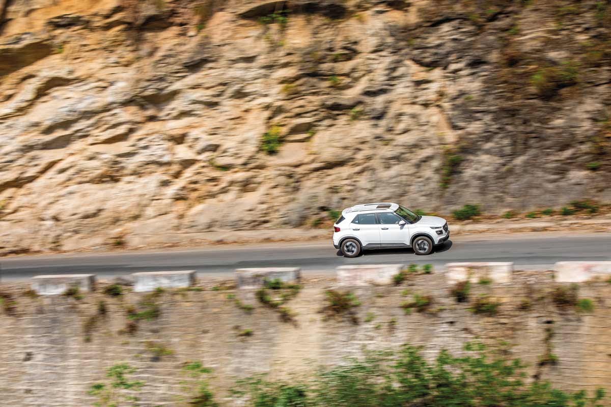 I floored it in the Venue. The needle darted to the redline, falling momentarily as I slotted it into third before picking itself up again. I lifted off before the first corner — an easy sighted right-hander — and chucked the car in. The Venue has always been an enthusiastic handler, and it proved to be so again and again, the further up the road we got. It is one of the more stiffly sprung cars in the Hyundai range — not as soft as say, the i20 or the Creta — but that stiffness lends it great poise around bends. The front end reacts very predictably to your inputs, and while sharp, it never feels unsettled. This surefootedness is at odds with its tall stance, but this compact SUV can genuinely put a smile on your face when you thread a set of corners perfectly in it. For the first few kilometres, I worked the engine — shifting up and down between corners, extracting as much performance as I could from this pint-sized package. But I found that keeping it in third and riding the torque — shifting to second only for the really tight or steep stuff — and building a rhythm to be far more enjoyable. This left enough room for error, not just mine but for everyone else I was sharing the road with. And it allowed me to focus on my lines and just get the car to flow with the road, instead of trying to beat it into submission. Another pro tip: If you’re waiting to overtake a bus, don’t hang too close behind it. Very often, a head pops out of the window and promptly disgorges its half-digested breakfast into the wind.