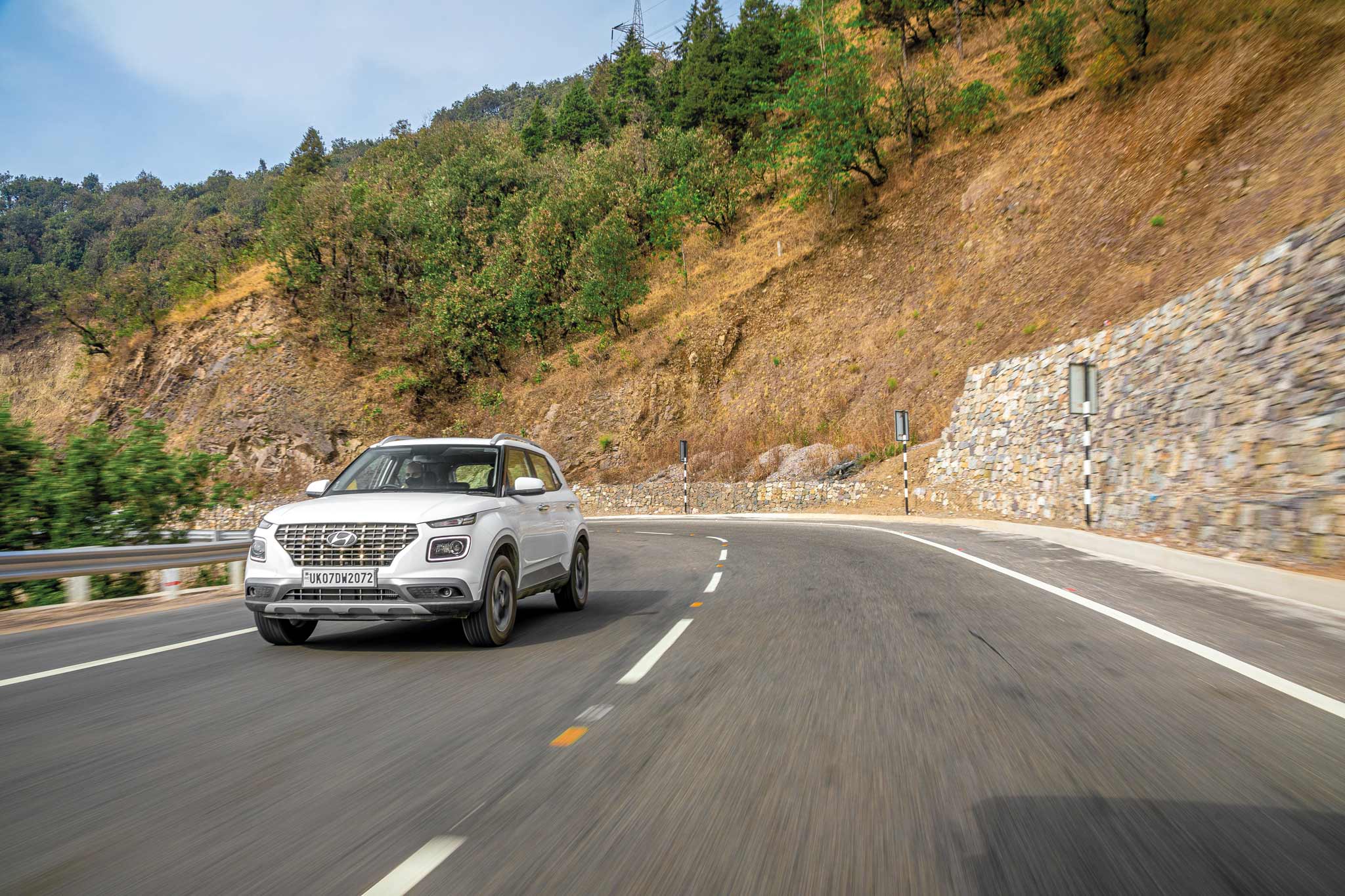 The climb up to Narendra Nagar was a sombre reminder of why SUVs are so effective at road-tripping in India. And why compact SUVs seem to have exploded onto the scene. These roads are narrow. Your speed on these roads, much like in a crowded city, is inversely proportional to the width of your car. And with a small footprint like the Venue’s, I could keep up a healthy pace. This was our first taste of the mighty Himalayas — a proper climb with switchbacks, blind turns and straight patches that were only long enough for you to get the turbo spooled up in second, before they forced you to lift off for another corner. The Venue proved to be an eager companion. With a direct steering and short wheelbase, it darted between the corners enthusiastically.