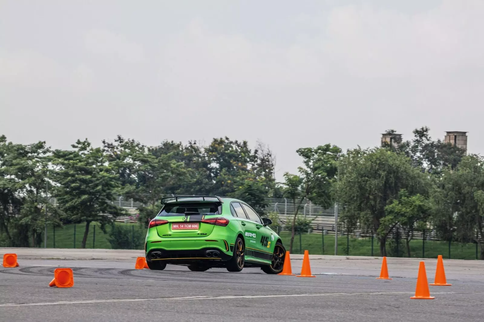 If the lead-and-follow laps were about speed and flow, the autocross was all about finesse. A meticulously laid-out course, tighter than a Delhi bylane and twice as tricky, tested drivers’ precision, reflexes and nerves. The weapon of choice? The Mercedes AMG A 45 S Limited Edition, a hot hatch that feels purpose-built for this kind of playground. Compact, razor-sharp and shod with Michelin Pilot Sport tyres that grip like they’ve sworn an oath, the A 45 S showed off exactly why it’s our go-to car for autocross at every AMG Experience. Here, it wasn’t about brute power, but about threading the car through cones, gates and braking zones with the smoothness of a surgeon – all while chasing the fastest time. The kicker was the live leaderboard flashing results in realtime, keeping competition level at maximum. Sure we didn’t have Toto Wolff and his brilliant race team, but we had AMG Track Pace. It’s brought to you by the engineers at Mercedes-Benz Research & Development India, in Bangalore, and this smartphone app records real-time driving data as you go around a track. You can revisit over 80 telemetry parameters to see where you can shave off precious milliseconds. And we made good use of this feature. Of course, no autocross session is complete without the inevitable drama. Clip a cone and get a neat little three-second penalty. Miss a gate, take a wrong turn or forget to brake in the box, then get a harsher five-second addition. The penalties were a reminder that in autocross, precision beats brute pace every time.