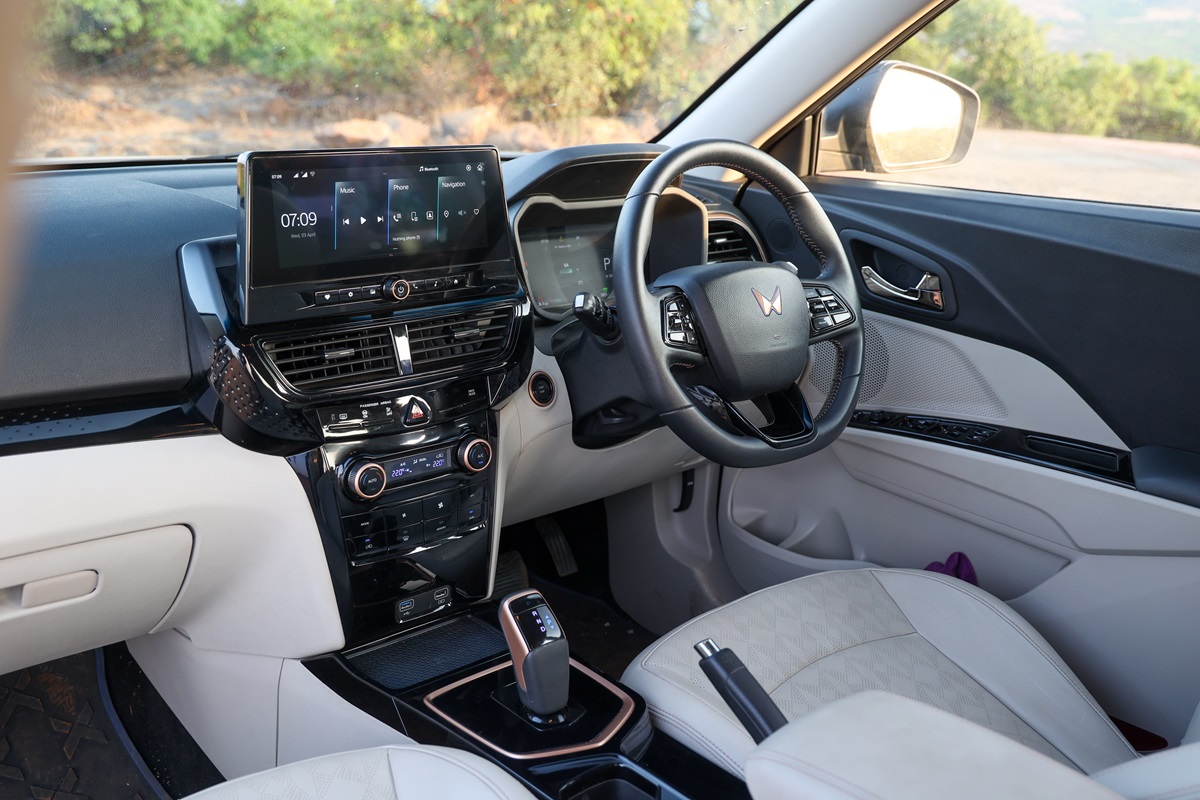 The definition of a driver’s car has evolved a fair bit. Not too long ago, enthusiasts turned to hot hatches and sporty sedans to get their thrills and put up with stiff rides and having to creep over our skyscraping speed breakers. However, like myself, many of those enthusiasts have grown up and now seek sporty qualities in more practical vehicles. The XUV400 strikes a great balance of everyday usability and weekend thrills. Take the steering wheel, for instance. On the one hand, it is sophisticated, with easy-to-reach buttons that cycle through various functions on the dual 10.25-inch screens and operate the cruise control. Yet it’s beautifully finished in leather, has pronounced thumb grips, a flat bottom and a tactile quality. Furthermore, for an electrically assisted system, it actually offers a good amount of feel and weight.