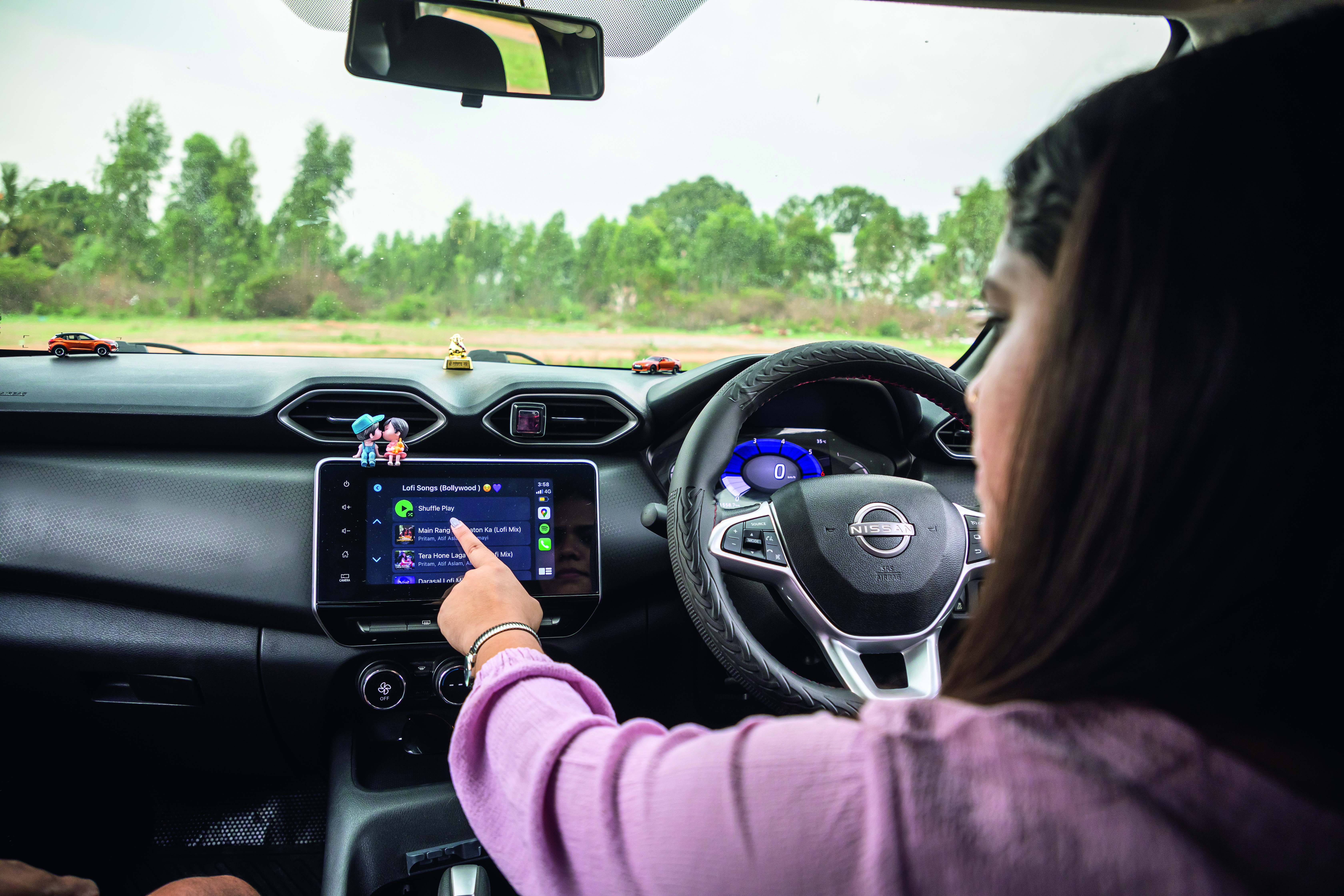 The couple and their dogs often enjoy their weekend drives together.I open the driver-side door and am greeted by a scale model of a Nissan GT-R placed on the dashboard. This is something that Aparna and Sajin picked up from Japan as a reminder on what their subsequent upgrade would be. That may be some time down the road but for now, the couple is still enjoying the high of buying their very first car as a family. Finished in a stunning shade of Onyx Black, this is Aparna and Sajin’s story with their beloved Magnite.
