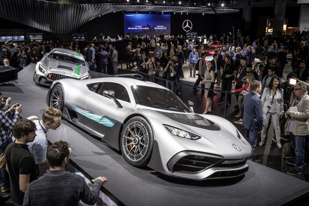 The Mercedes-AMG Project One at the Los Angles Motor Show in 2017Here’s Mercedes-AMG fulfilling the dreams of F1 enthusiasts by bringing F1 technology right onto the streets. The two-seater AMG Project One is powered by the same unit that does duty in Lewis Hamilton’s W10 EQ Power+ F1 car. The 1.6-litre V6 hybrid petrol engine is paired to four electric motors, producing over 1000hp and capable of accelerating the Project One to 200kmph in just 6 seconds. Top speed is over 350kmph. Deliveries of the 275 sold out cars start in 2021.