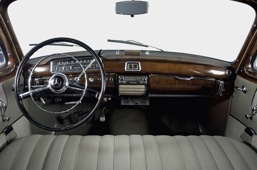 In the 1950s, the steering wheel became even more of a central interface between car and driver – as a control centre for new comfort functions and greater safety. In 1951, Mercedes-Benz introduced a gearshift on the steering column in the 300 'Adenauer-Mercedes' (W 186) and in the 220 (W 187), which led to an improvement in comfort for driver and front passenger. This was because at that time, the front seats usually consisted of a continuous bench which could accommodate up to two co-drivers.