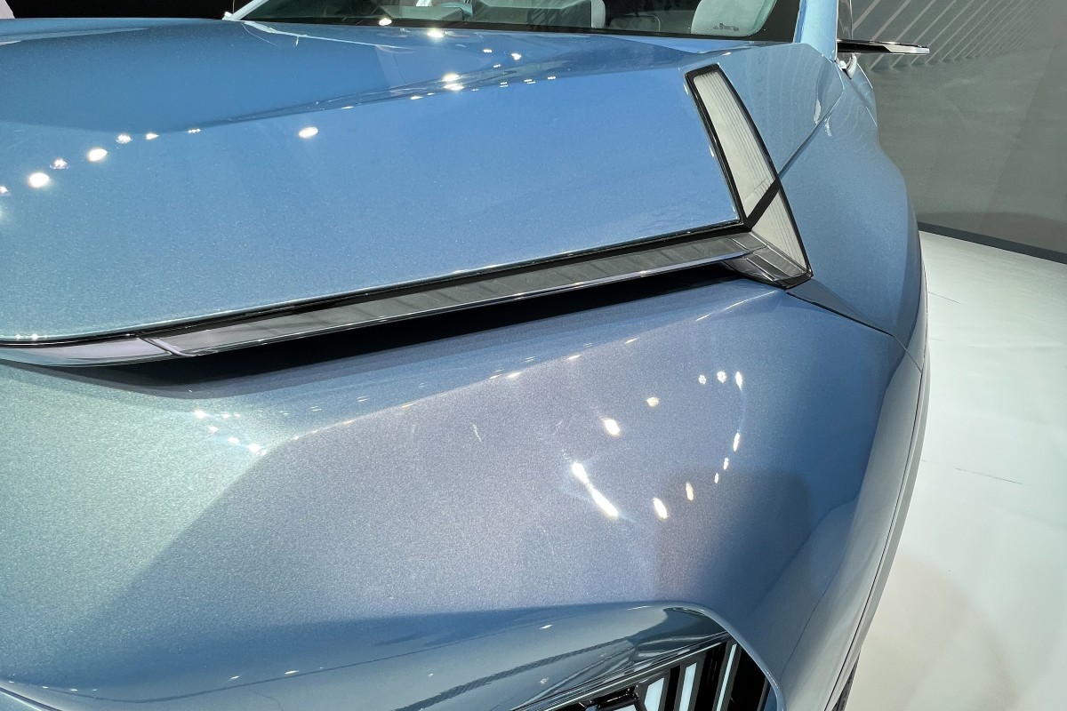 The steering wheel makes use of touch surfaces, and an illuminated logo