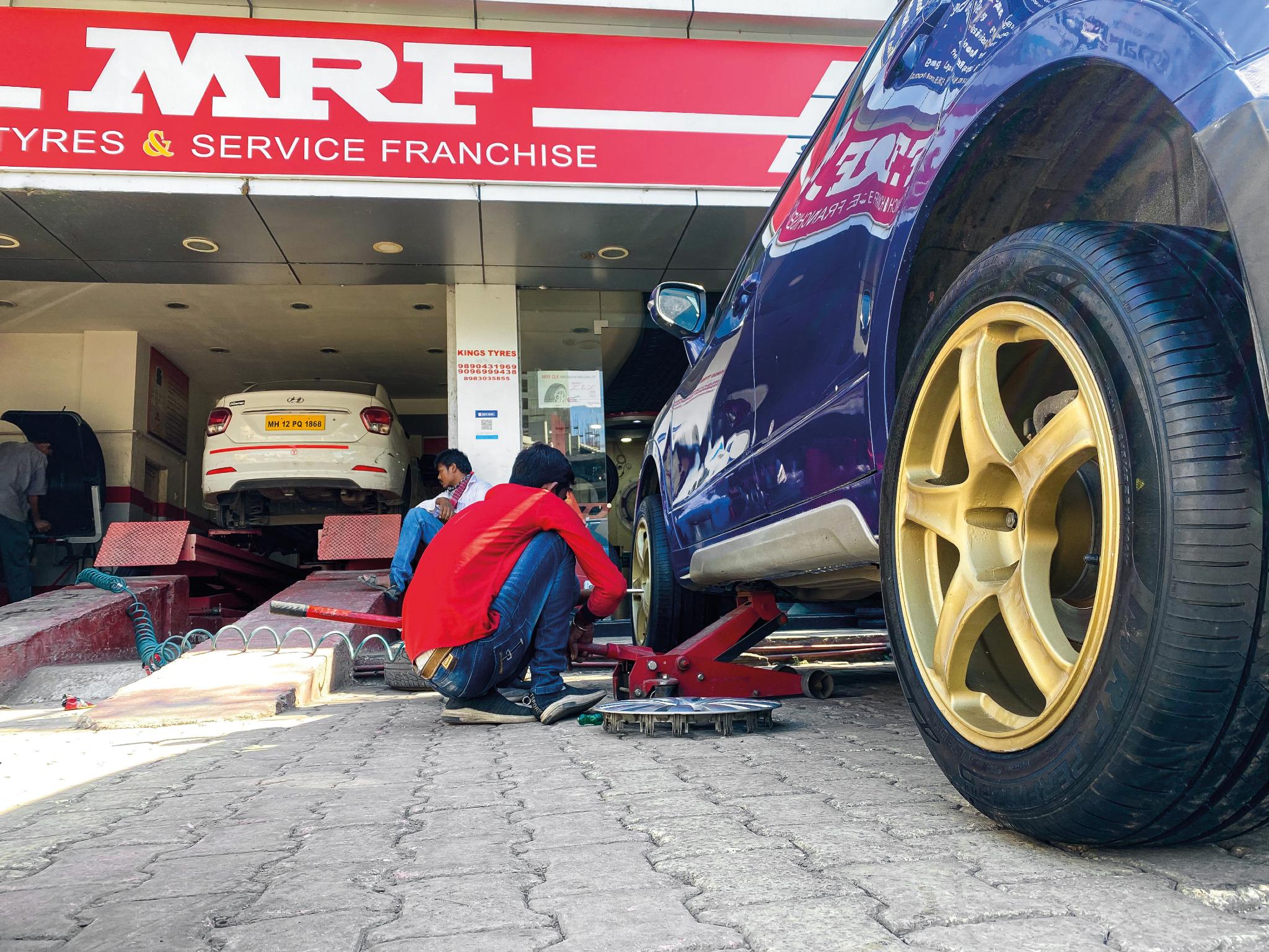 Getting the 18-inch Perfinzaa tyres mounted on the S-Cross