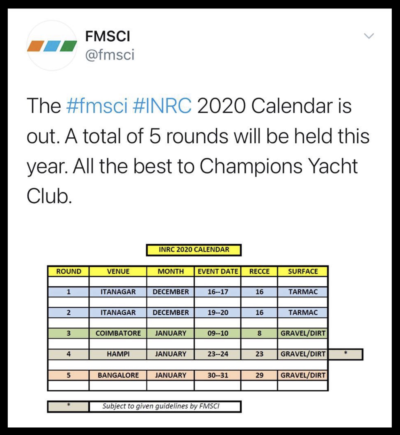 ये à¤à¥€ पà¥�ें- FMSCI declares final schedule for INRC 2020
