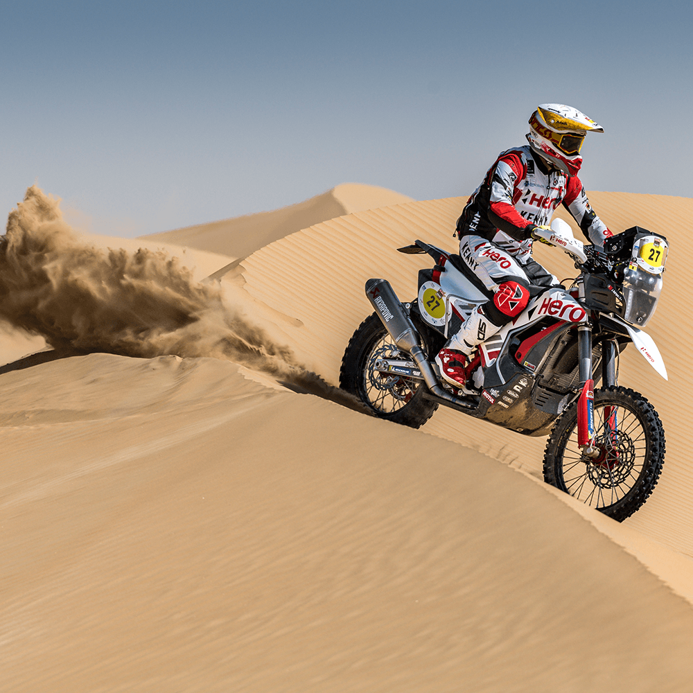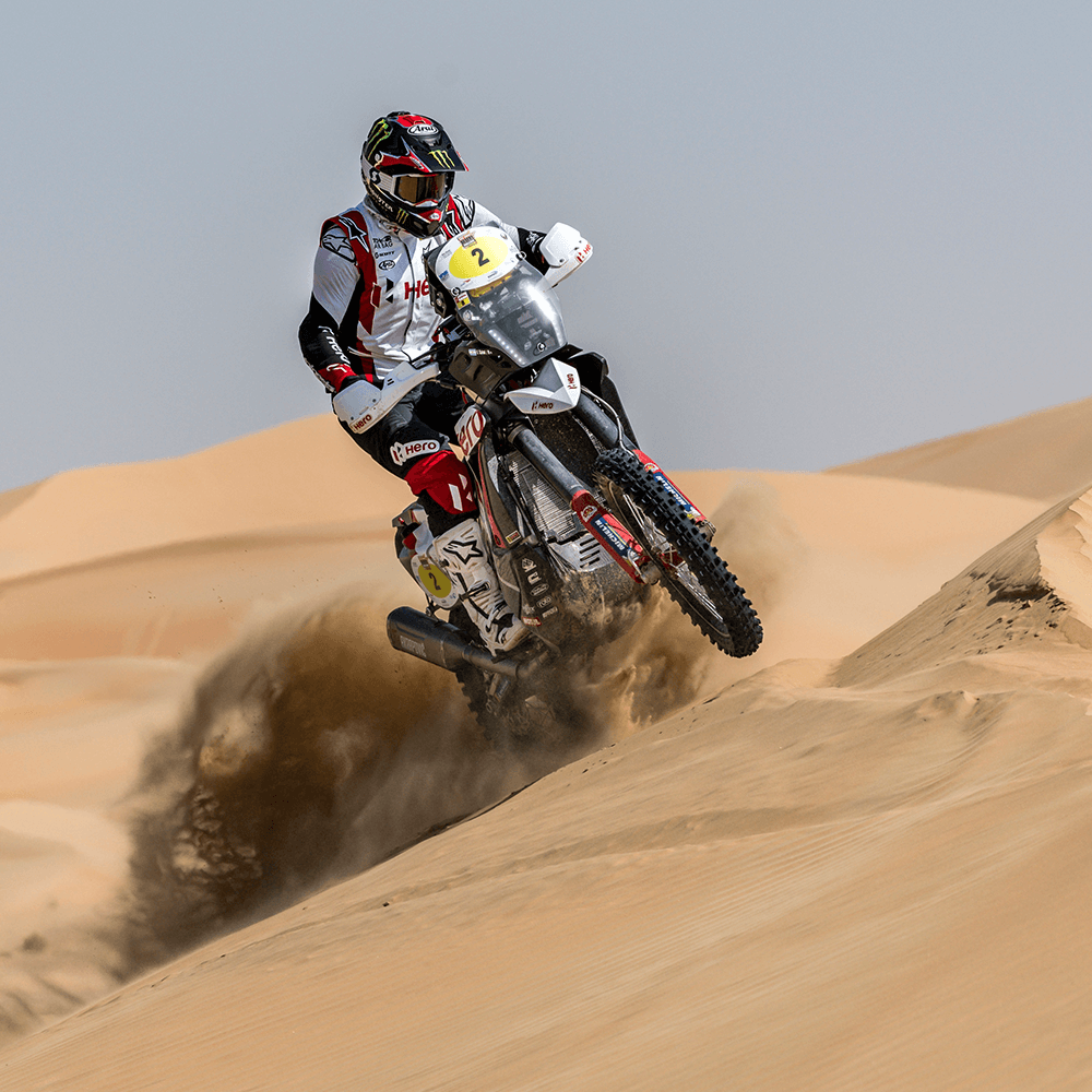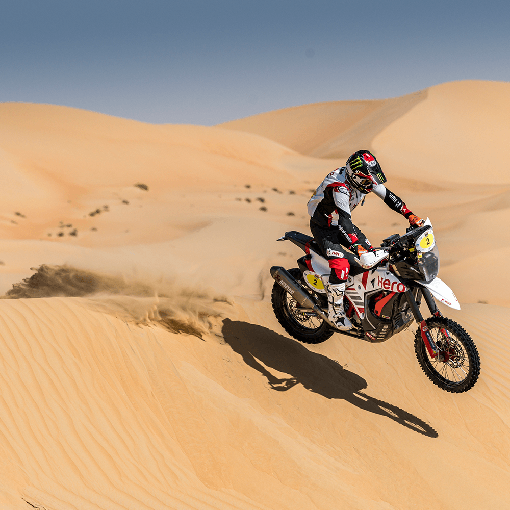 The Abu Dhabi Desert Challenge is the final rally before the 2022 Dakar Rally and Hero MotoSports have hit the ground runningThe Abu Dhabi Desert Challenge is the final rally before the 2022 Dakar Rally and Hero MotoSports have hit the ground running. All the three riders in the Hero stable ended the first stage in the top 10 with Franco Caimi leading the charge with a P3 finish. The Abu Dhabi desert has proved to work with the Hero Rally 450 bike as the riders had to race on 262km of Special Stage and also covering 366km of total distance in the process.