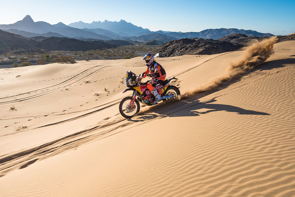 Toby Price, piloting the Redbull KTM Factory Racing KTM 450 Rally factory edition won the opening stage, with a lead of 5 seconds over Monster Energy Honda pilot Ricky Brabec despite 2 minute penalty Toby was handed after his roadbook tore 15km after starting the rally. Toby’s teammate Matthias Walkner ended the stage at the third spot.