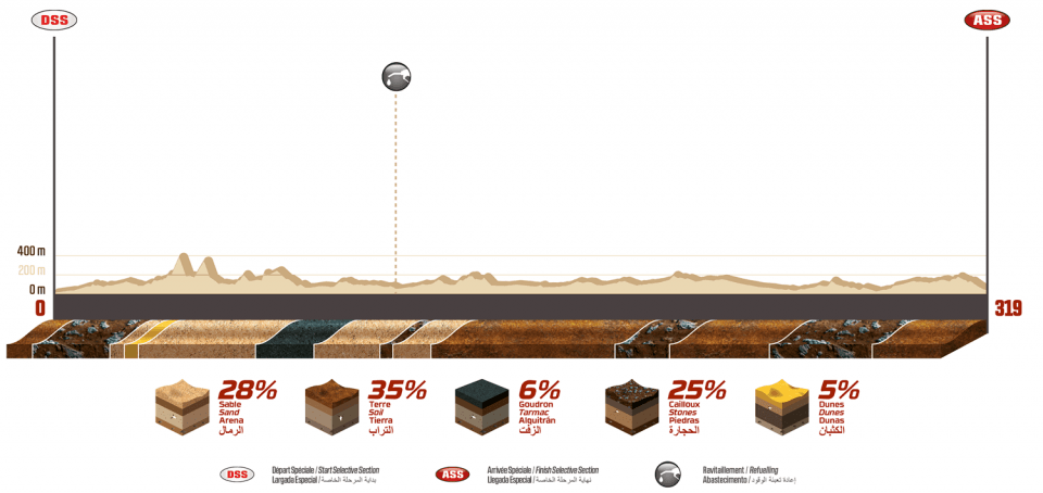 Terrain profile: 28% Sand | 35% Soil | 6% Tarmac |25% Stones | 5% Dunes