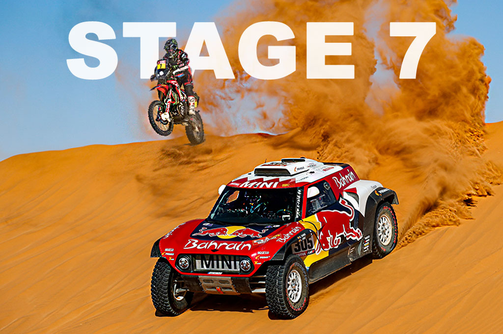 The seventh stage was won by Carlos Sainz of the Bahrain JCW X-Raid Team with a time of 4 hours 16 minutes and 11 seconds thanks to the faster top speed of the Mini. He has now extended his overall lead to 10 minutes. Nasser Al-Attiyah of Toyota Gazoo Racing was placed second, coming in 2 minutes and 12 seconds behind. Bahrain JCW X-Raid Team’s Stephen Peterhansel sticks to third overall as well as in the stage rankings with a time of 4 hours 19 minutes and 4 seconds. Bernhard Ten Brinke of Toyota Gazoo Racing was just 5 seconds behind Peterhansel with a time of 4 hours 19 minutes 9 seconds, now placed seventh overall. Yazeed Al Rajhi of Overdrive Toyota finished fifth behind Brinke, and his overall fourth place advantage is 12 minutes and 32 seconds over Orlando Terranova who finished the stage in ninth place.