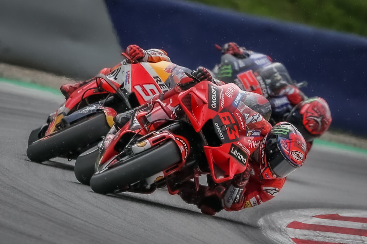 Pecco’s first win at MotoGP was clearly not the easiest as he had to duel it out with Marquez on the track from the get-go. The duo had managed to draw a lead from the rest of the pack on the opening stages of the race. But due to the tyre choice of a Hard front and Soft rear, both riders had to carefully manage their tyres so it could see them till the end of the race. With three laps remaining, Marquez, who was trailing Bagnaia by tenths for the whole race, started to make moves on the Ducati rider. Attempts after attempts were made by the Honda rider, but couldn’t complete the overtaking move on Pecco. Marquez tried seven overtake attempts in the last three laps and yet came second to Pecco on the finish line. This surely made Bagnaia’s first victory a lot sweeter.