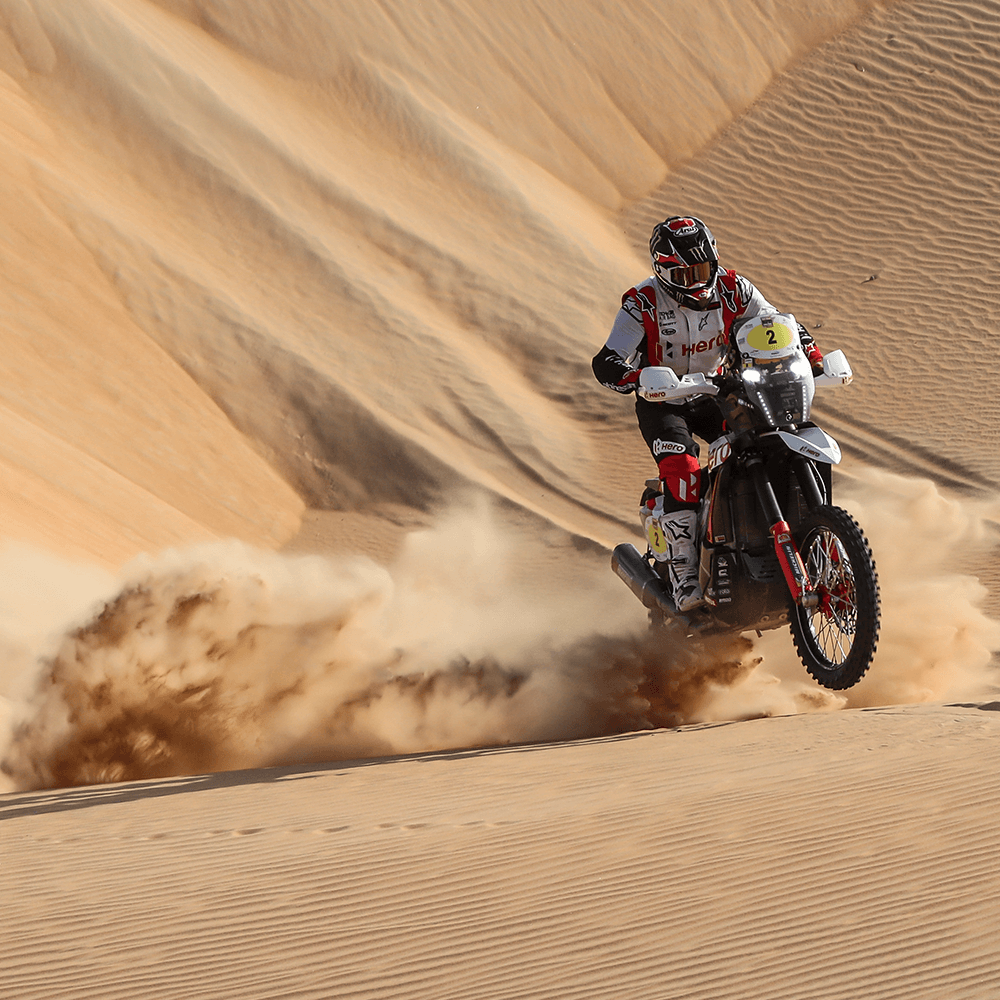 Stage 2 of the Abu Dhabi Desert Challenge proved to push the Hero MotoSports riders to their limitsStage 2 of the Abu Dhabi Desert Challenge proved to be difficult for the Hero MotoSports riders to endure the extreme heat and navigate the undulating dunes of the desert. But despite that, two out of the three Hero MotoSports riders were able to finish in the top 10. This stage was also the longest stage in the rally with 333km of Special Stage, with an additional 137km of liaison sections.
