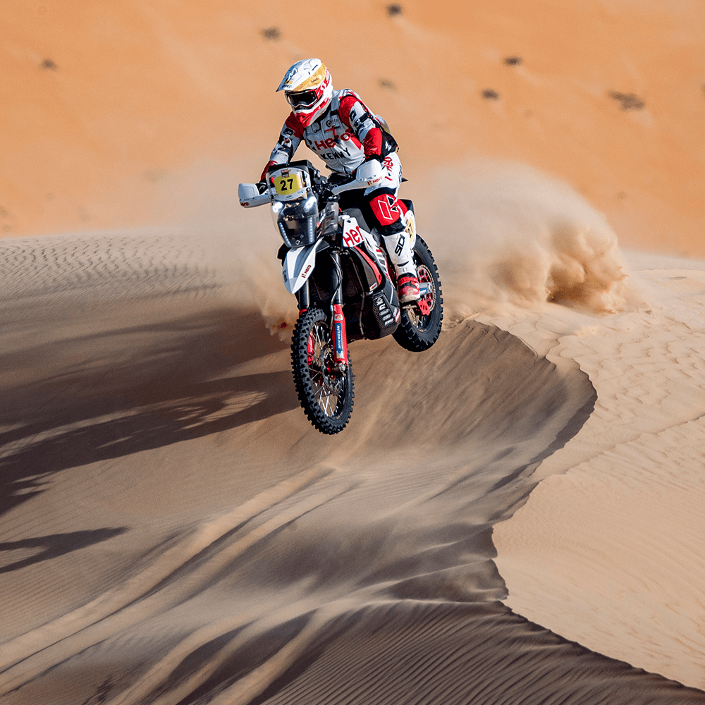 Joaquim Rodrigues had a better day than yesterday. He was able to finish the stage in P6, one better than his Stage 1 finish.Sebastian Buhler managed to climb back the order with a P5 finish in the stage. After the stage, he said, “Today was a very long and tough stage in the sand, one of the toughest stages I have ridden. Riding in these deserts is very tricky with long fast plateaus and sudden steep descents. Overall, I am happy with my performance and looking forward to the next stage.”