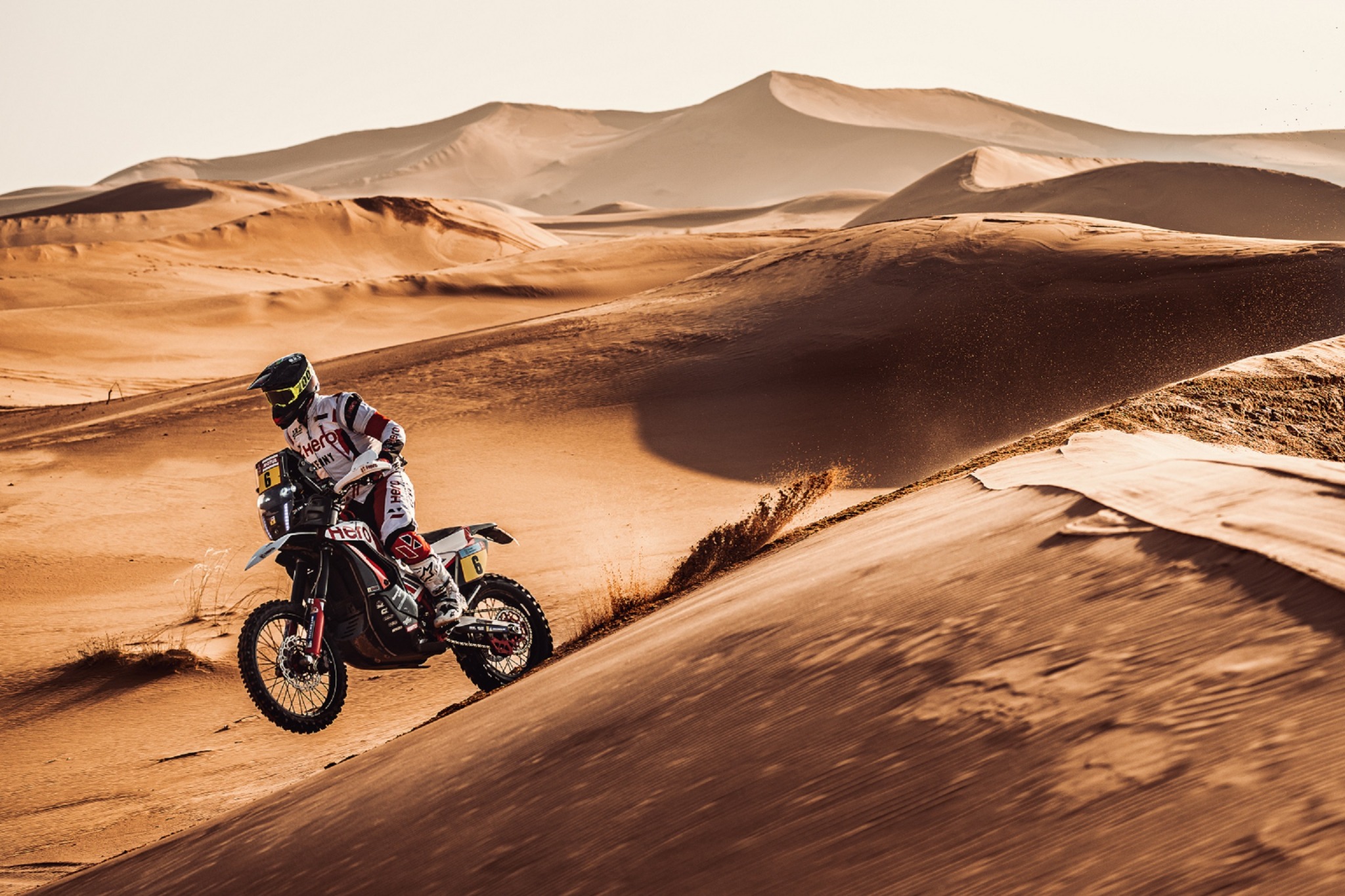 After the stage, Aaron said, “It was a really long, fast and rocky stage, with only a small section of dunes in the middle. I struggled to keep up pace with the other riders and hence decided to slow down and concentrate on my navigation. The bikes and we are back here safe, and in good shape, and that’s good news. I’m taking it one day at a time, and looking forward to better results.”