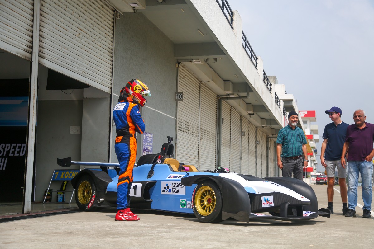 Ruhaan Alva with the IRL race car during pre-season testing at MMRT in ChennaiIndian Racing League: Faster race cars