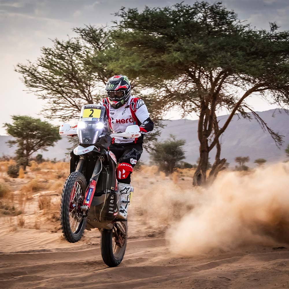 Joaquim Rodrigues of Hero MotoSports finished in the top five in Stage 4 of the 2021 Rallye Du Maroc after a ride through a whopping 367km Special Stage.Joaquim Rodrigues finished in the top five in Stage 4 of the 2021 Rallye Du Maroc after a ride through a whopping 367km Special Stage. The route travelled through the Sahara Desert that extends in the country of Morocco and also shared routes with the stages from before and that proved to be a problem for navigation for the riders. Franco Caimi and Sebastian Buhler were affected by the ruts left by the previous stages and that caused the riders to make navigation errors which dropped them down the order. It also looks like Hero MotoSports have ironed out their reliability issues with their Hero 450 Rally bike and have also tested their Dakar spec parts on the bike as well. This puts them on a positive foot for the rally ahead and for the crown jewel, the Dakar 2022. So with that said, let us see how Stage Four panned out for the Hero MotoSports riders.