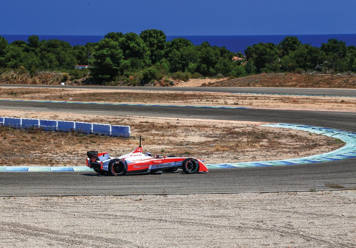 I flick the switch on the left to make it go ‘live’ and… there’s nothing, none of the traditional signs of a car coming to life.There's no noise. Obviously there’s no noise, after all this is a completely electric race car – no fuel exploding inside cylinders, no pistons pounding away 15,000 times a minute. Inside the helmet, Nick Heidfeld’s helmet with the padding removed to go down my fat head, it is deathly quiet. I’ve seen this Mahindra Racing Formula E car race the previous weekend, I’ve seen Nick pile on in test miles at this remote circuit on the Mediterranean coast and I’ve driven enough electric cars for this lack of noise issue to be a non-issue. But what I’m struggling to wrap my head round to are the lack of vibrations. Race cars throb, pulse, shudder and shiver underneath you. At idle they’re angry, unfed beasts shackled in the bowels of the Colosseum, desperate to be set free. The phrase chilled-out has never been used to describe a bull in the ring. Nor a race car.