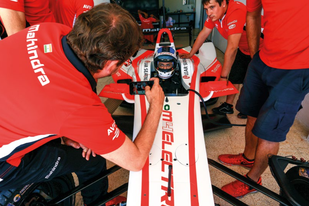 Before we get out of the pits let me run you through the Formula E car and one of the most sensible things the series organisers have done – focused research and money on what matters. All the teams run the same Dallara chassis with the same aerodynamic package so teams don’t spend millions of dollars in the wind tunnel, honing the aero – an area that has little relevance to road cars you and I drive. The tyres are supplied by Michelin, 17-inch low-profile rubber that resembles road tyres and comfortably last the duration of the race so no headaches on that front. The front suspension is common to all teams. The battery pack, a huge 320kg box behind the driver’s back is made by Williams and is common to all the teams. Behind the batteries is the free zone – teams develop their own electric motor, gearbox, rear suspension pick-up points and of course the software to control the entire shebang. With total power available to the teams also being identical, the R&D money goes into one thing – efficiency. Reduce losses, get more range and deploy the available juice in the batteries more efficiently. Mahindra Racing are already at 91 per cent efficiency, next year the target is 93 per cent. It’s that fractionally better efficiency that determines your grid position.
