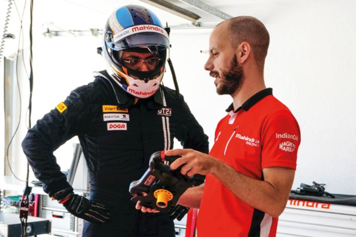Running through the steering wheel controlsIt sets the tone for what is a rather easy race car to drive. The car I’m strapped into has M4Electro emblazoned on its nose cone, the test mule for development parts for Mahindra’s 2017-18 Formula E car. In reality though it is closer to this season’s M3 and this test session is to test new code in the software and also improve on its already fantastic race starts.