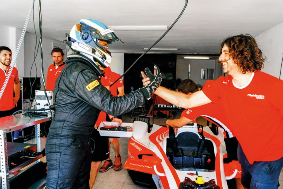 Right at the start, Indian engineers were involved in the Formula E project with Mahindra Reva engineers working with Carlin Motorsport to understand the batteries, the motor and also build the initial thermal model.Mahindra Racing’s base is still in the heart of UK’s motorsport valley at Oxford where, as of May this year, they moved out of the conference room in the Heathrow Airport Crowne Plaza and into their own offices – after two years and two months! The cars are based in Barcelona, at Campos Racing, where the simulator is just one of the major investments Mahindra Racing have made. On the shop floor there’s a brand new dyno to test electric motors, benches to work on the motors, batteries and controllers, design offices and a redundant piece of equipment on the wall – a ear plug dispenser. It’s the first race shop I’ve been to where you don’t have to shut your ears!