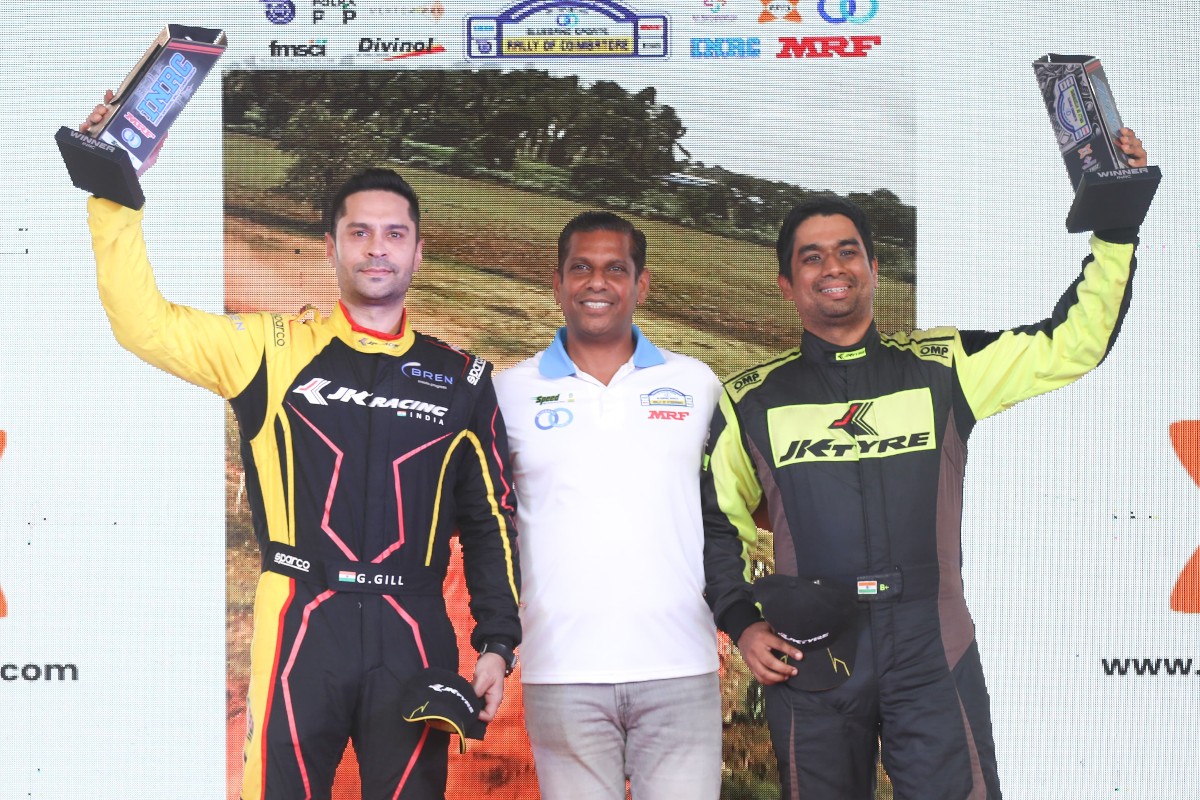 Gaurav Gill (left) with Aniruddha Rangnekar (right) clinched the top spot on the podiumChetan Shivram (with co-driver Shivaprakash) finished second overall, also claiming the category win for INRC2. Fabid Ahmer (with co-driver Milen George) finished third overall on the podium, while also taking the runners up spot in the INRC2 category. Meanwhile, Jason Saldana (with co-driver Thimu) took the third podium spot in INRC2.