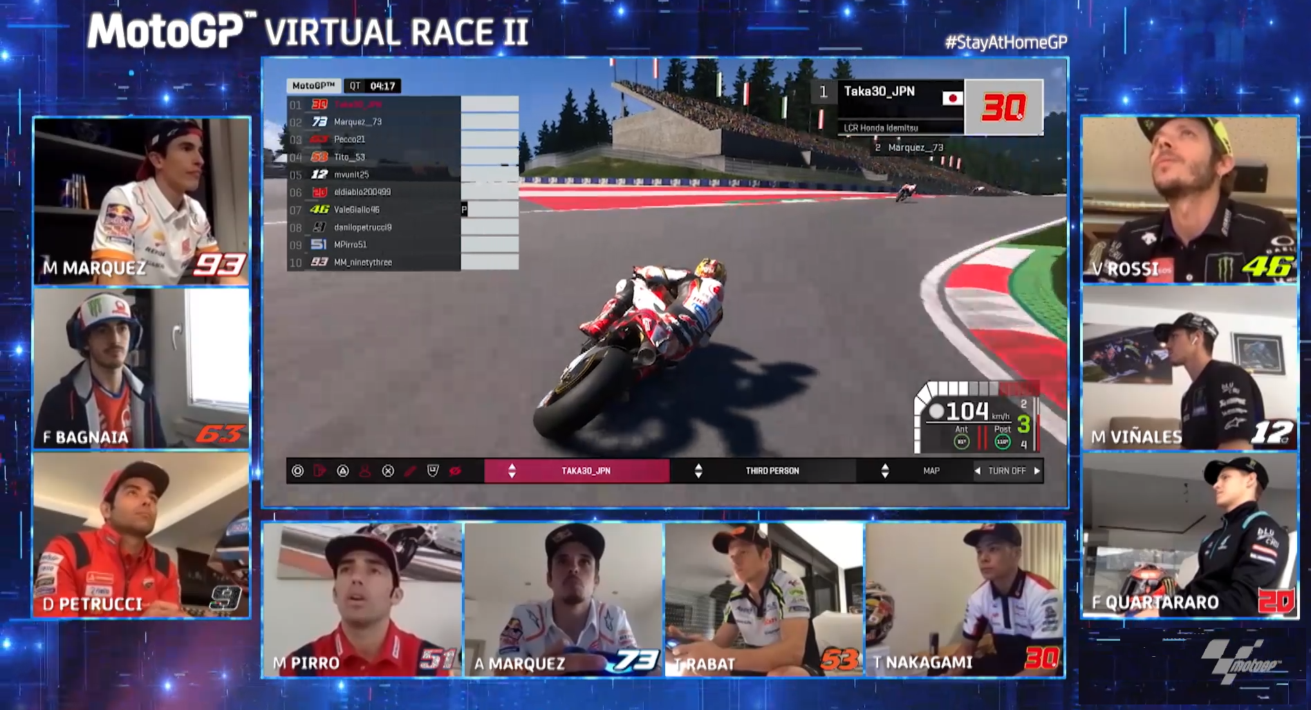 Francesco Bagnaia takes the crown on the second edition of the #STAYATHOMEGPAfter the success of the first edition of the #STAYATHOMEGP which took place on March 30 at the Autodromo del Mugello (albeit its virtual rendition), the second edition of the ‘season’ moved to the Red bull ring in Speilberg, Austria. Now, since the virtual format does not follow a points-based scoring system and allows for only ten riders on the grid, the five top scorers of the previous race (Repsol Honda’s Alex and Marc Marquez, Pramac Ducati’s Francesco Bagnaia, Monster Energy Yamaha’s Maverick Vinales and Petronas Yamaha’s Fabio Quartarao) were joined by five new riders, in the form of Ducati teammates Danilo Petrucci and Michele Pirro, Tito Rabat from the Reale Avintia (Ducati) team, LCR Honda’s Takaaki Nakagami (the only non-European rider thus far) and Valentino Rossi, joining teammate Maverick Vinales. This race also marked the entry of the Factory Ducati team in the virtual Moto GP