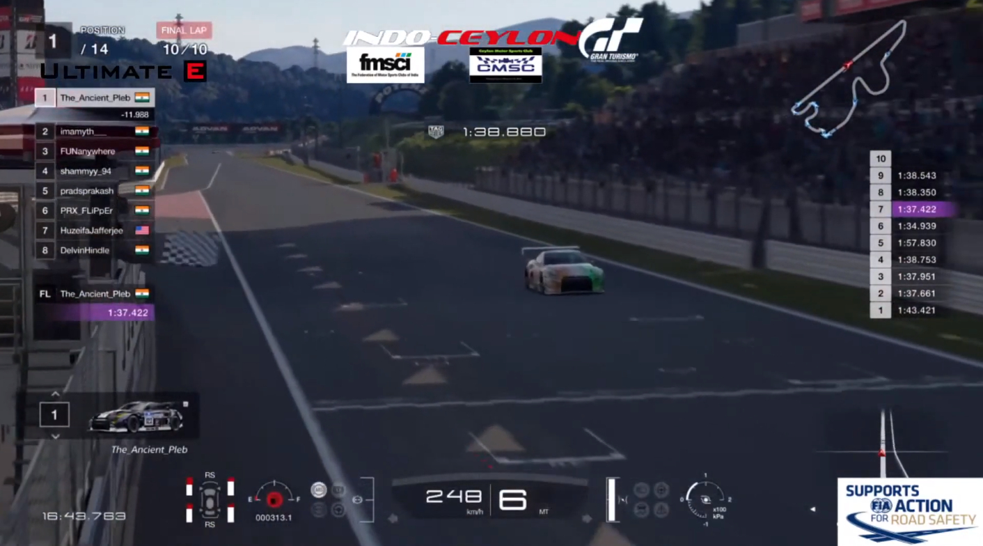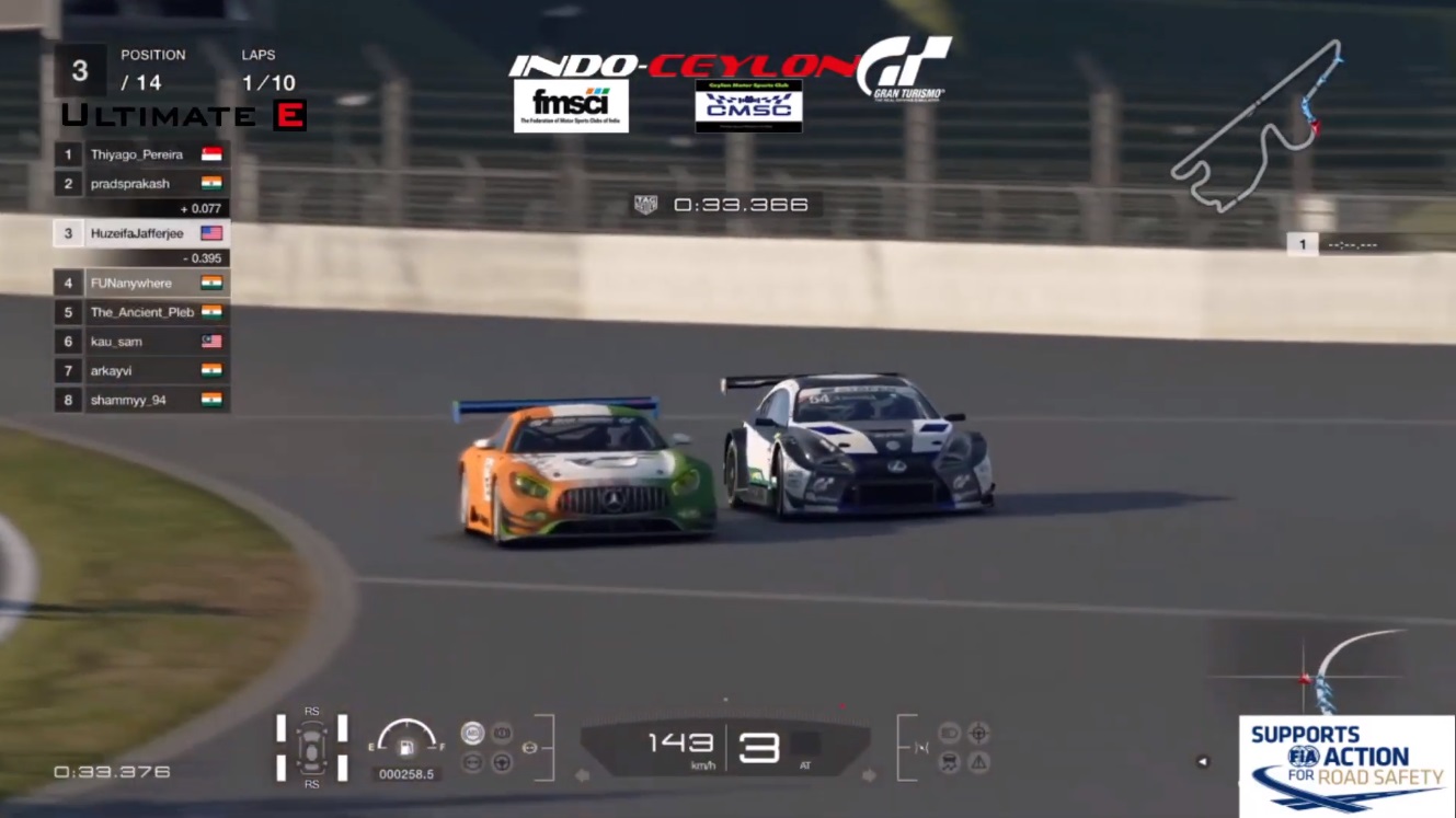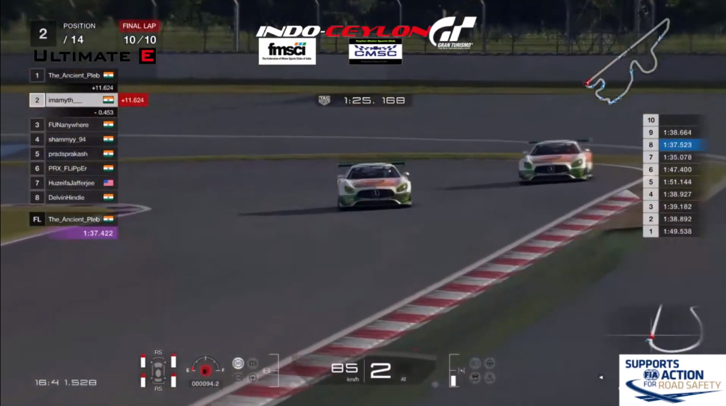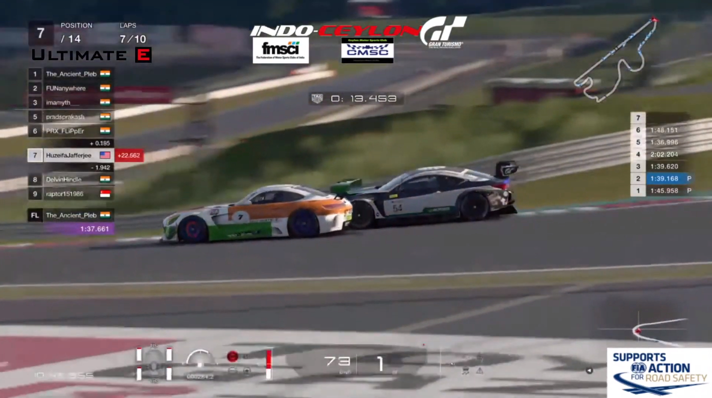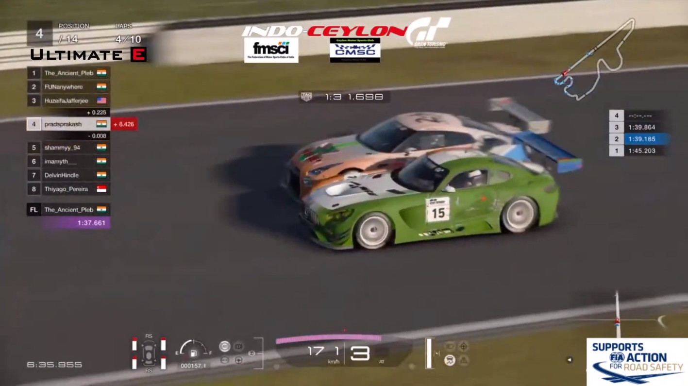 The Indo-Ceylon GP was held on the Gran Turismo Racing platform. As with most other virtual races, the GT3-class cars were all running a fixed setup, with medium-soft tyres. However, adding in a dimension of difficulty, racers had to keep a keen eye on the condition of their tyres and their fuel level, as tyre wear was set to eight times quicker and fuel depletion seven times the normal speed as compared to a full-distance race. Further, the race progress was scrutinised by stewards, ensuring all four wheels on track, with penalties for actions like corner-cutting.