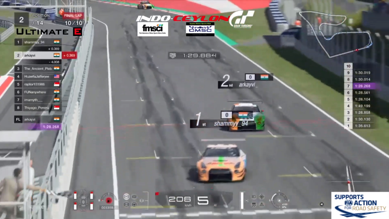 Shameem Fahath wins race 1 of the Indo-Ceylon Virtual GP at the Red Bull RingThe first round of the Indo-Ceylon Virtual GP, held in association with the Federation of Motors Sports Clubs of India (FMSCI) and Ceylon Motor Sports Club (CMSC), and supported by Federation Internationale de l'Automobile (FIA) Action for Road Safety, was kicked off with race one taking place at the Red Bull Ring, Speilberg, Austria, and race two at the Fuji International Speedway in Oyama, Japan. Indian racers Shameem Fahath and Aditya Raghav set a dominant first round, taking the wins in races one and two respectively.