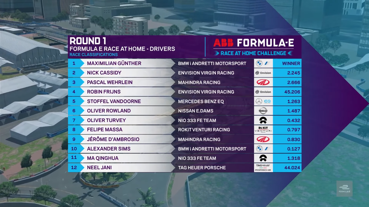 Maximilan Gunther wins ABB Formula E Race at home challengeThe first round of the ABB Formula E Race At Home challenge took off on April 25 at the Hong Kong Central Harbourfront Circuit after the test run at Monaco. The ABB Formula E Race At Home challenge features all the teams and drivers from the ABB FIA Formula E championship as well as a selection of the world’s fastest gamers.