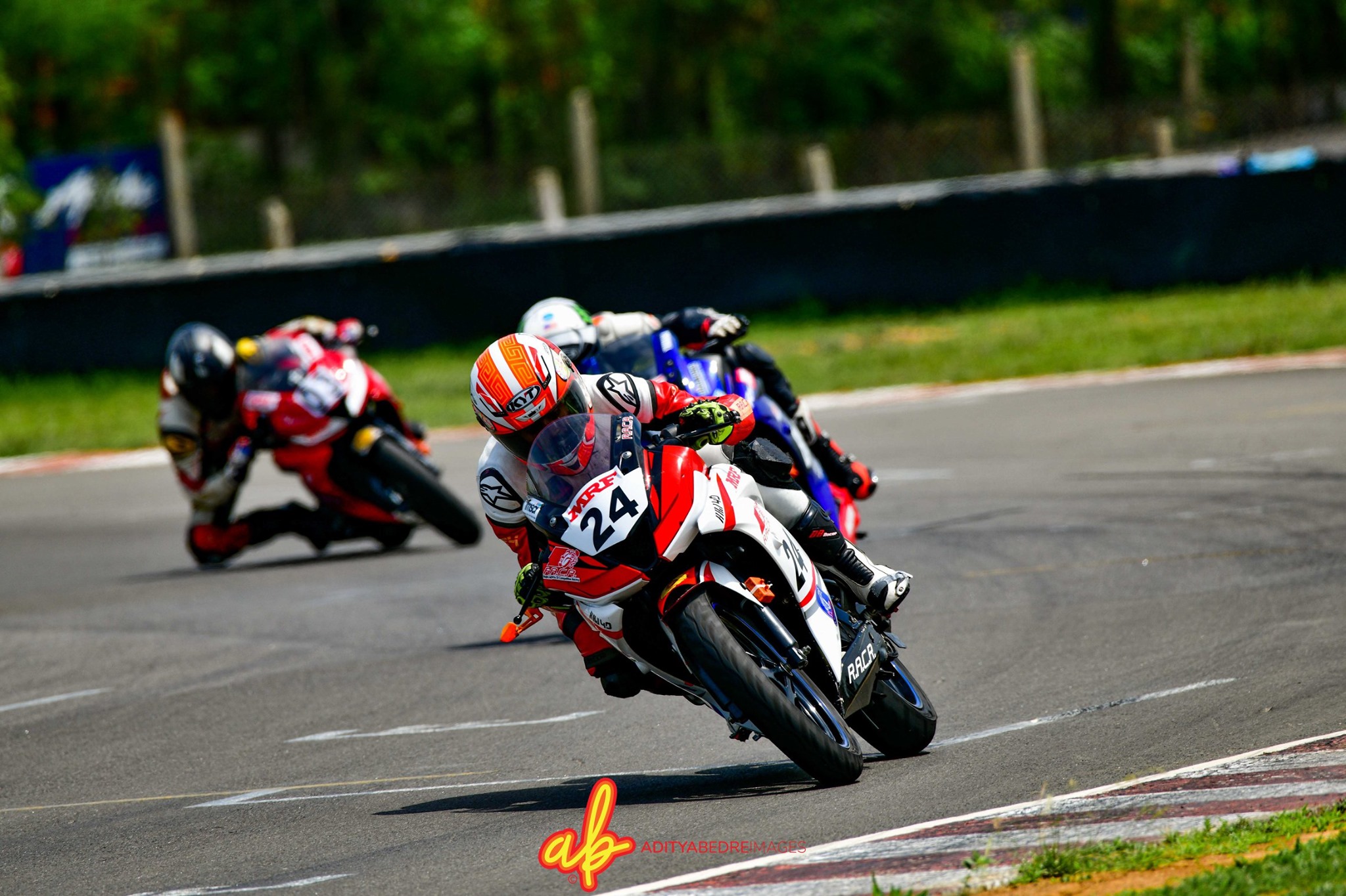 Sarath Kumar took the crown for team Idemitsu Honda Ten10 Racing in the fantastically close battle between the two titans, Honda and TVS. It was Sarath’s first championship title in nine years so he was decidedly ecstatic with the win and truly deserved the title.
