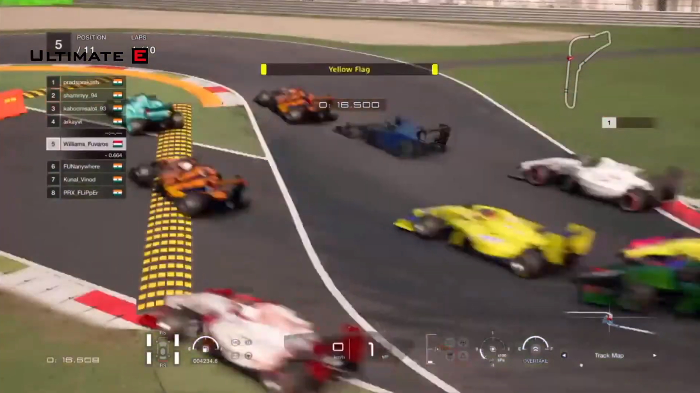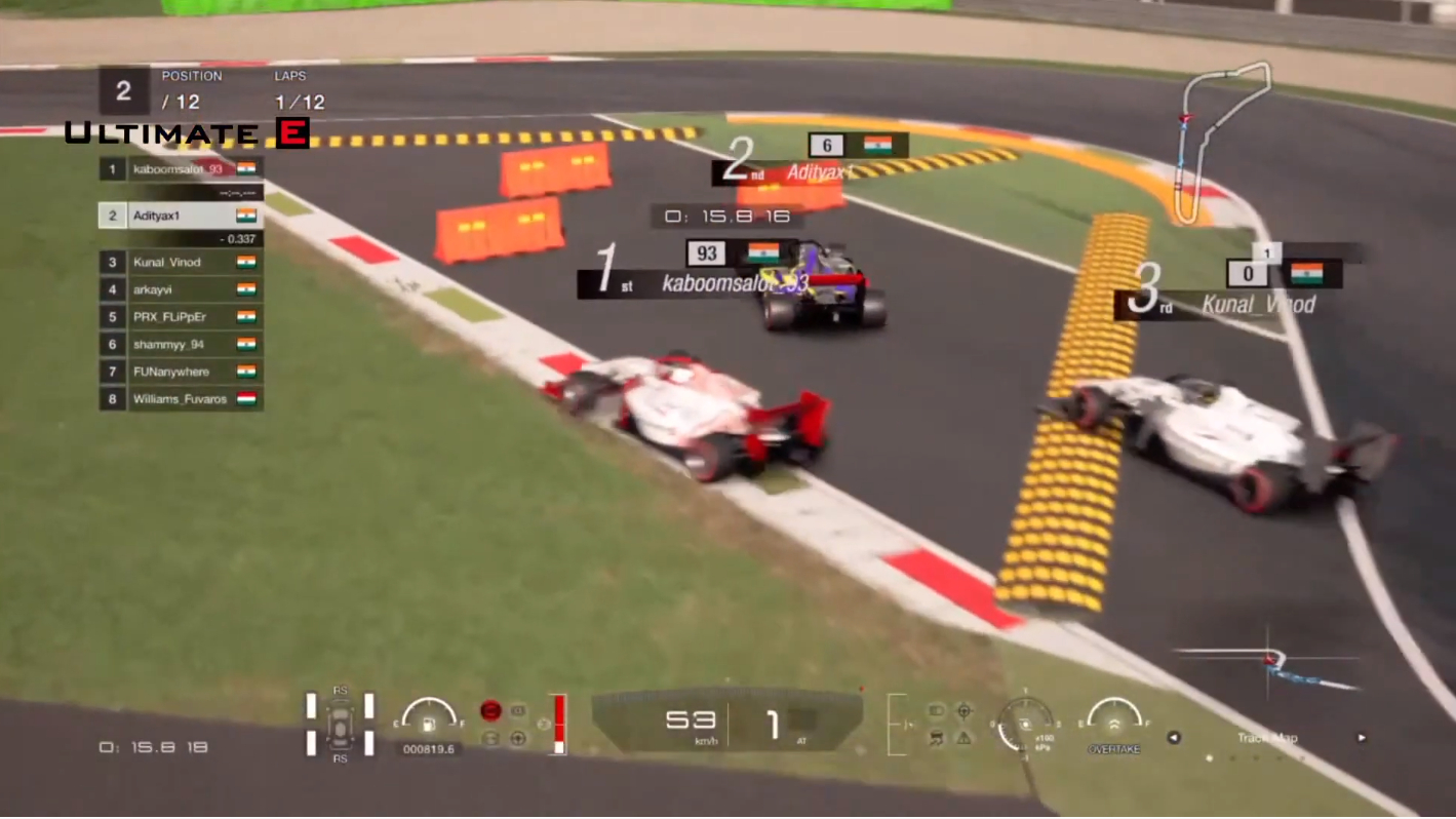 The reverse grid race had Aditya Raghav in the lead, but he was unable to get a start off the grid probably due to connection issues. The first corner again had a large number of racers, including front runners Aditya Patel, Gaurav and Kunal Vinod going off the track.
