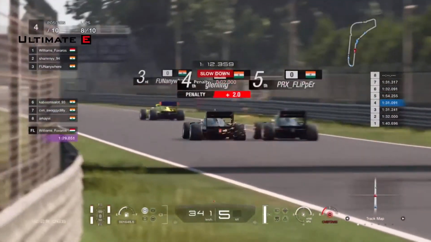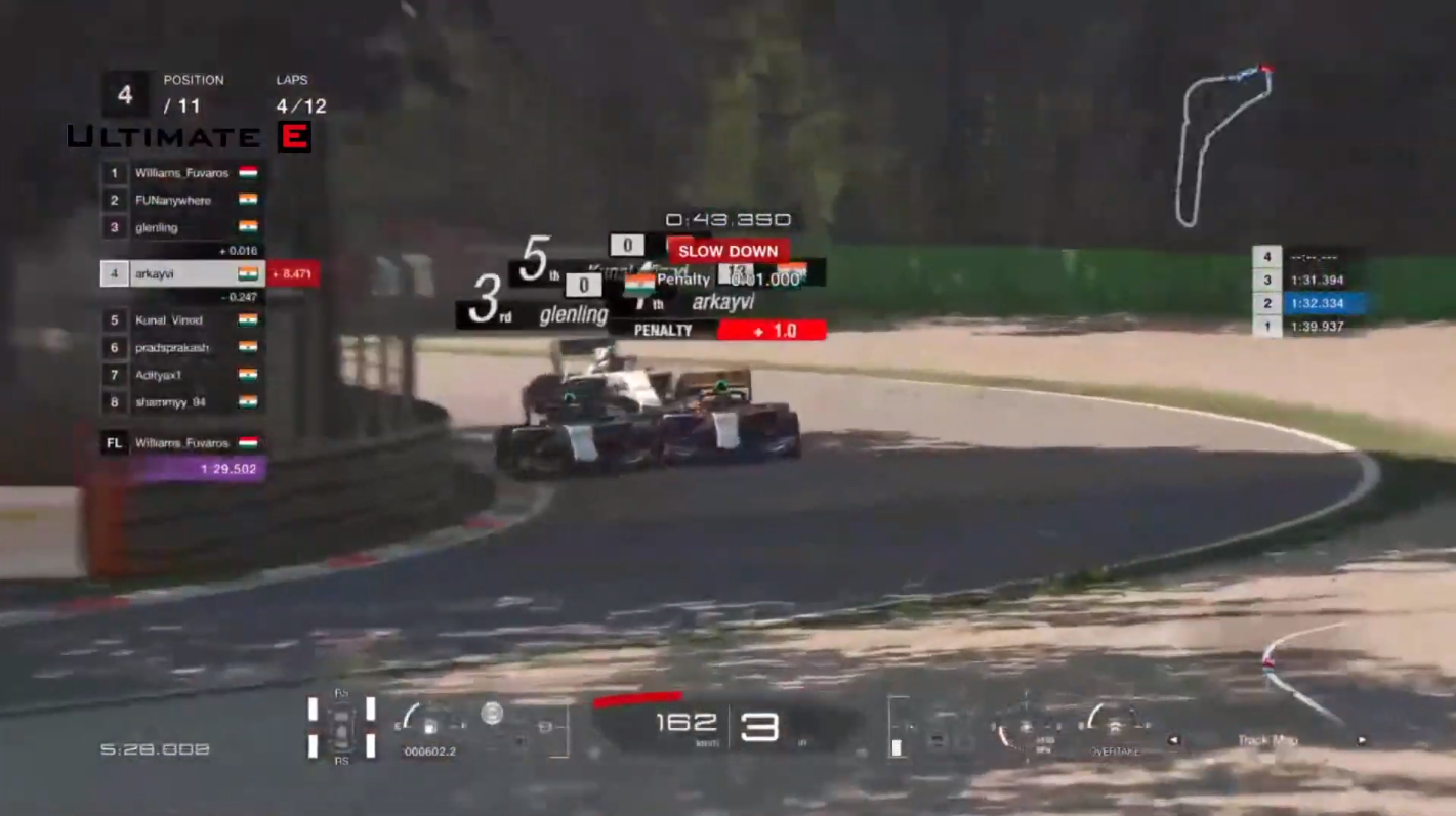 By Lap 4, Ravi was slapped with a 1.8-second time penalty, and Glen had now caught up to fourth place, and made his move going into the third place.