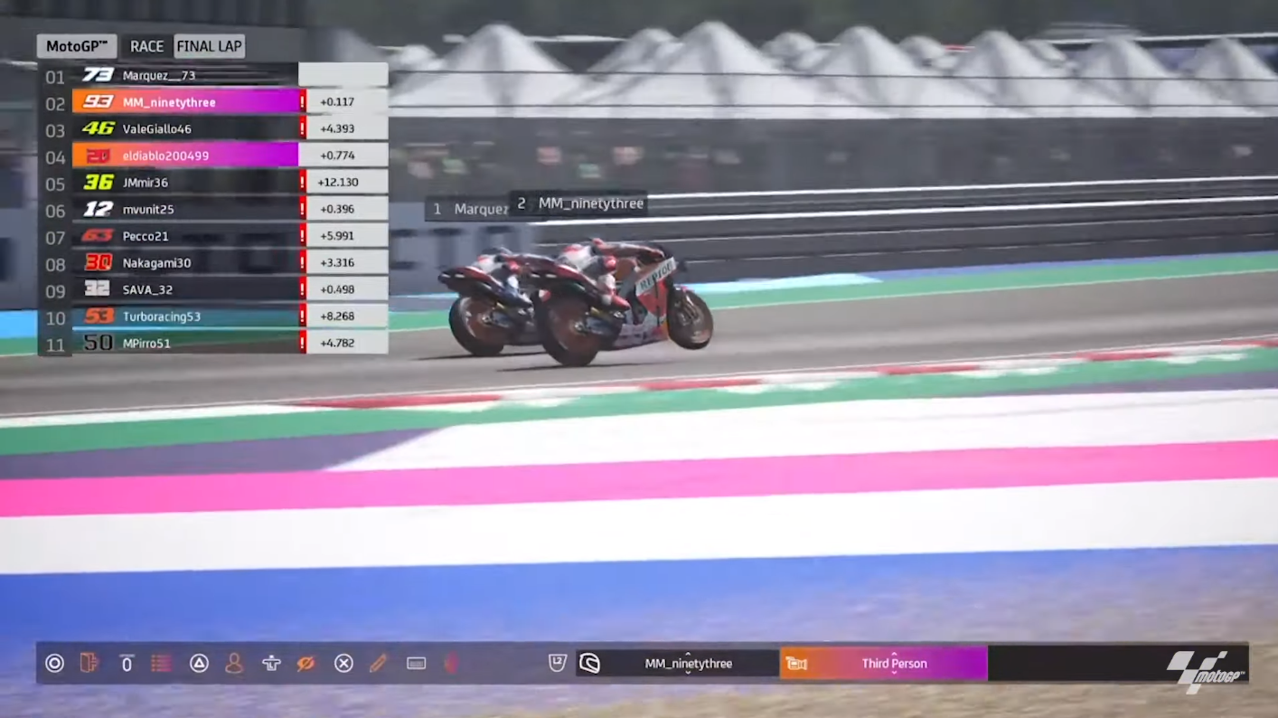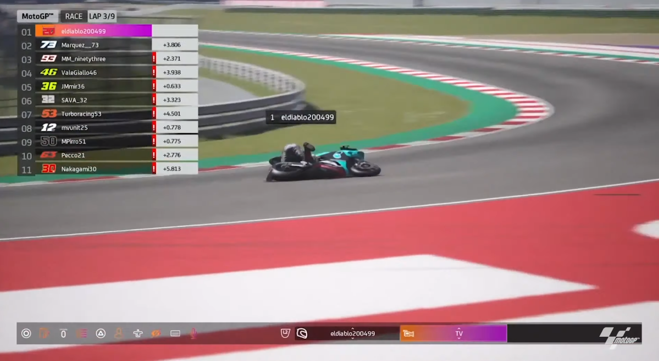Final list of finishers at Race 4 of the Virtual MotoGP Championship