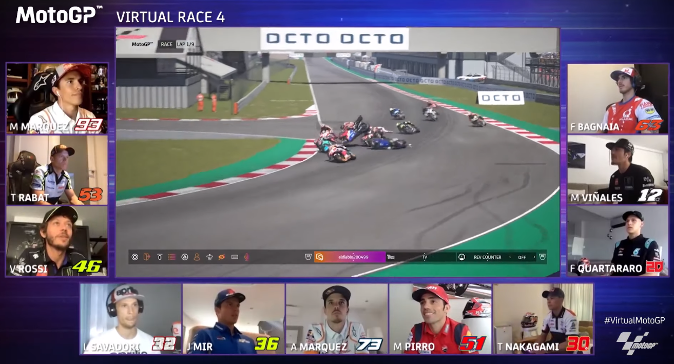 Alex Marquez takes the win at Race 4 of the Virtual MotoGP championshipRace 4 of the Virtual MotoGP was held at the virtual rendition of the Misano World Circuit, and attendance for this race was top class. Regulars, such as Marc and Alex Marquez, Francesco Bagnaia, Maverick Vinales and Fabio Quartararo were joined by Takaaki Nakagami, Lorenzo Savadori, Tito Rabat, Michele Pirro and Joan Mir. Finally, considering it’s his home circuit, Valentino Rossi just HAD to be there!