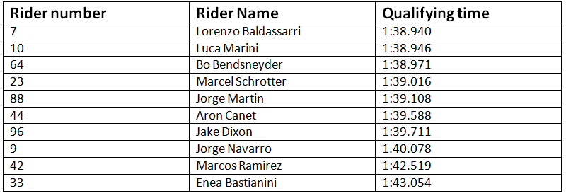 The results of qualifying for the Moto2 class are as under: