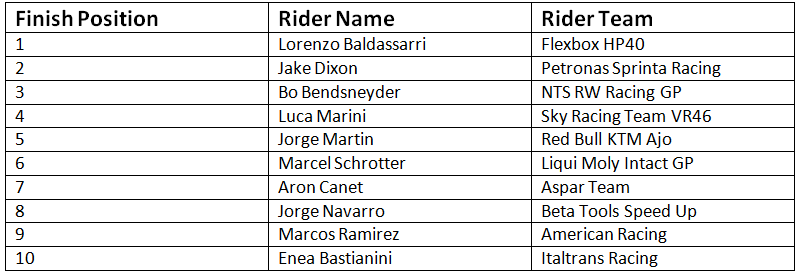 The final results of the Moto2 class are as under: