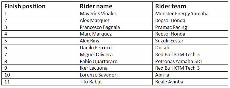 MotoGP final results