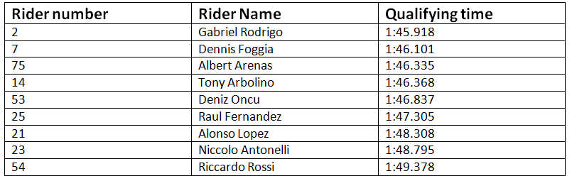 Moto2 qualifying timesRace – Moto2