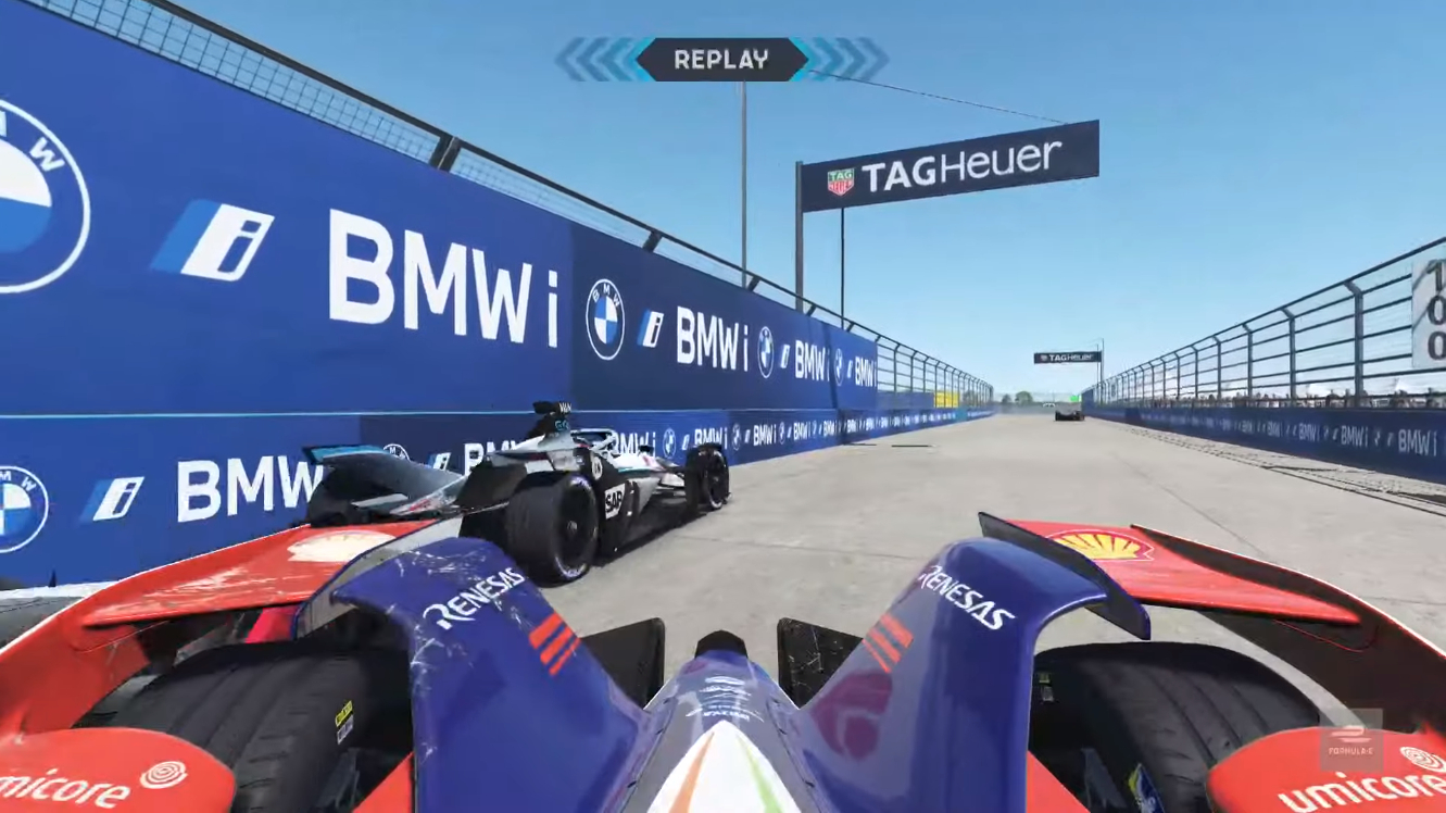Setting off, polesitter Nissan E.Dams’ Oliver Rowland was able to hold on to the lead, with Mahindra Racing’s Pascal Wehrlein warding off attacks from Mercedes-Benz EQ’s Stoffel Vandoorne. However, the Corner 1 scramble saw third-placed BMW iAndretti’s Maximilian Gunther fall down to P10, with Nissan E.Dams’ Sebastien Buemi climbing up to P4, leapfrogging Rokit Venturi Racing’s Edoardo Mortara as well. Almost simultaneously, there was contact between Buemi and Vandoorne, which caused Wehrlein to spin out and drop all the way down to the back of the grid. Going into Lap 2 and Rowland was still leading with Vandoorne now 2.7 seconds behind and Gunther in P3. Wehrlein, meanwhile, had marginally remedied his situation, climbing to P16.